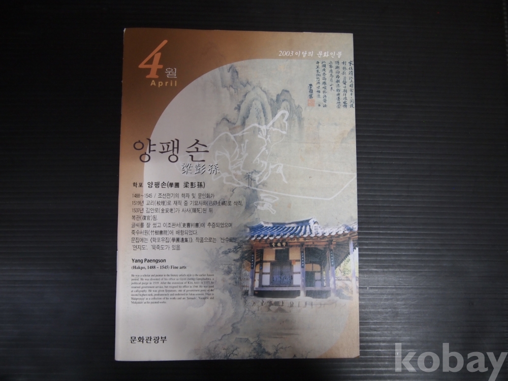 2003년 4월의 문화인물 ,,,양팽손,,,문화관광부 발행,,,