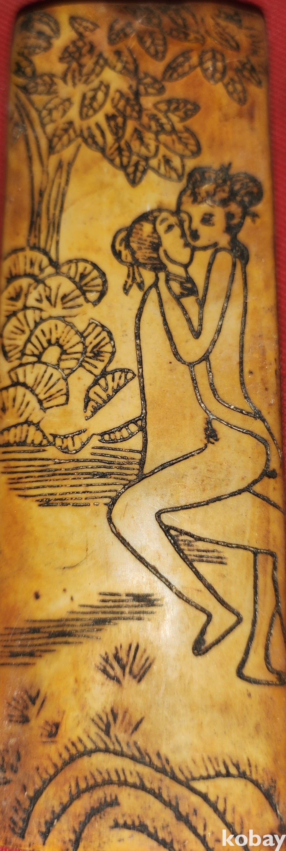 우각(牛角)으로 만든 남녀 애정행각을 음각으로 새겨진 뿔(角)조각품입니다,