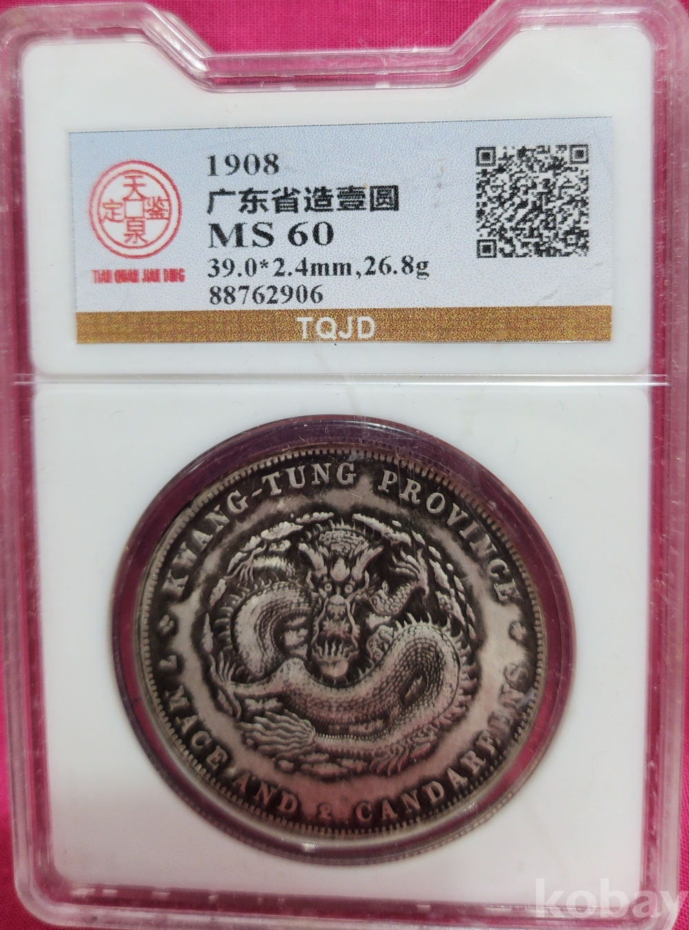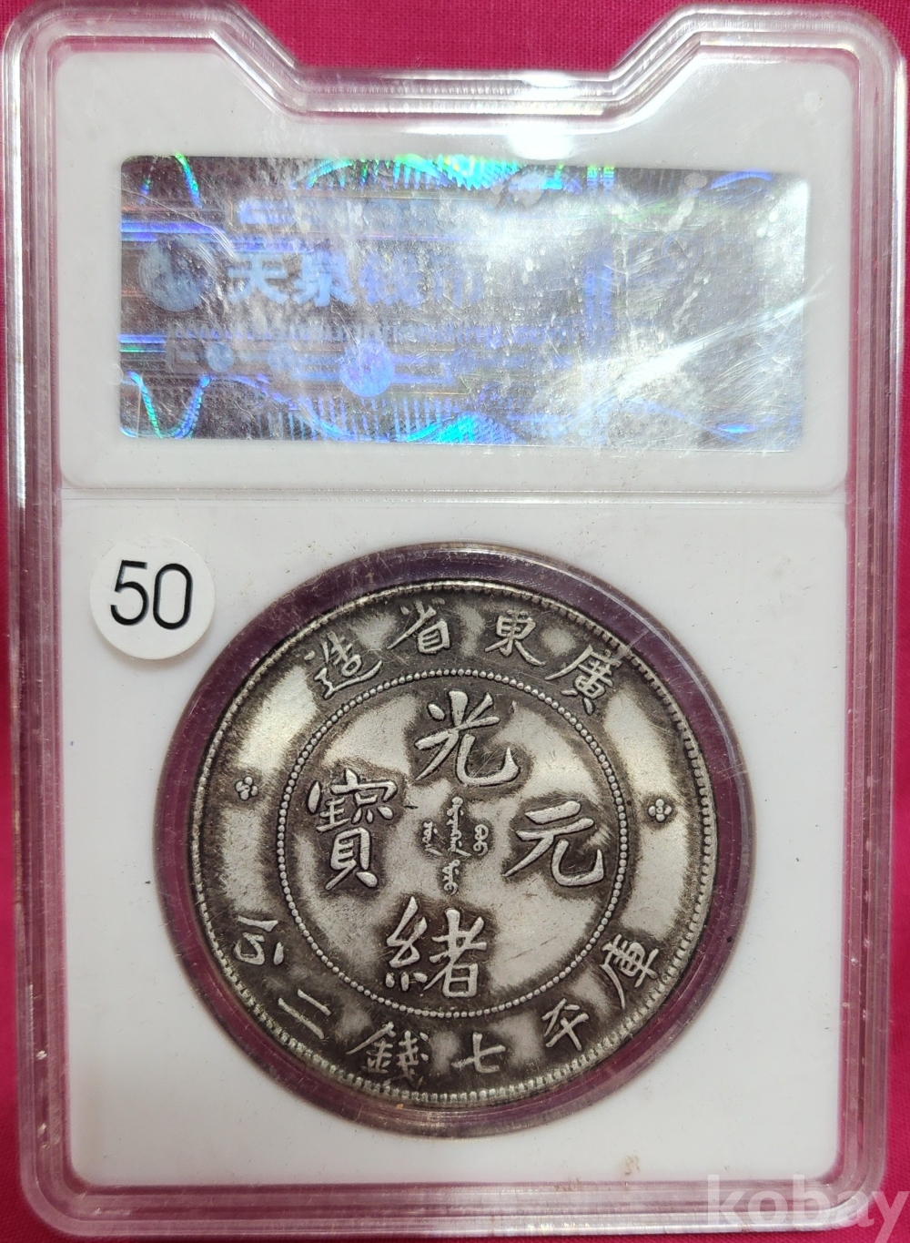 1908년 큐알코드(QR CODE)가 함께하는 은색 광서원보 (光緖元寶)' 화패로 밀봉된 상태입니다,