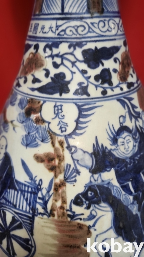 대원국 지정11년제 관지 청화유리홍 귀곡자하산도 문양 대항(大樽) 입니다,