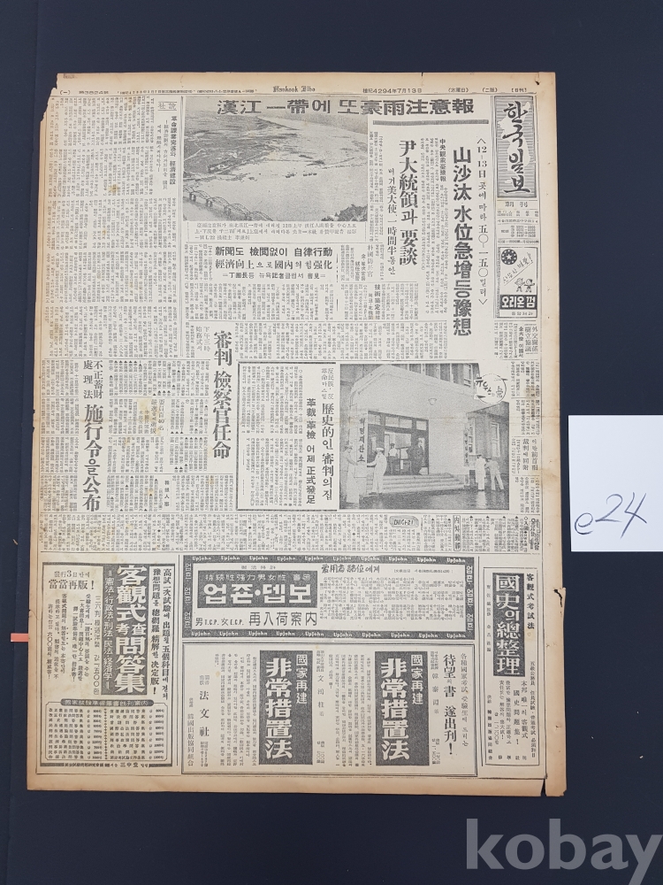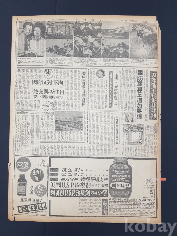 **** 한국일보/1961년 7월 13일/2면*메데나민 광고 포함