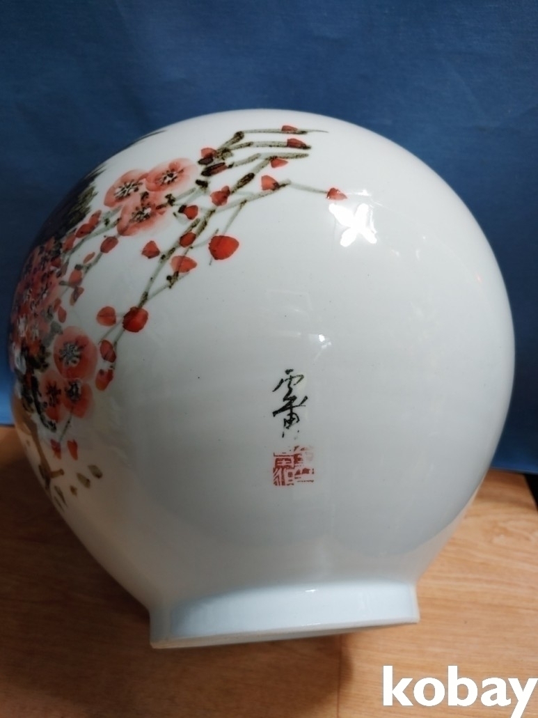 철화로 닭과 매화 꽃을 표현한 도자기 입니다.