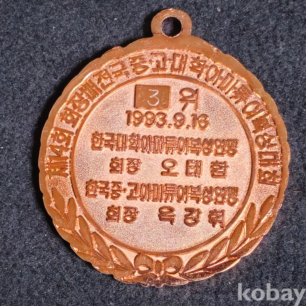 (((메달))) 제14회 회장배 전국중.고.대학 아먀튜어 복싱대회 3위메달 (1993) (한국중.고. 아마튜어복싱연맹)