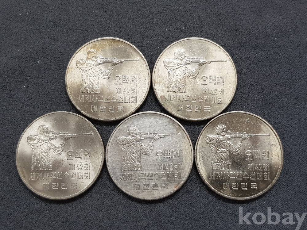 - 제42회 세계사격선수권대회 서서쏴 500원 기념주화 - 5개 일괄