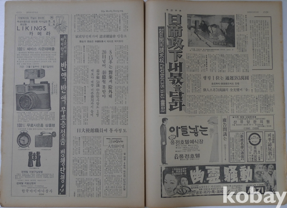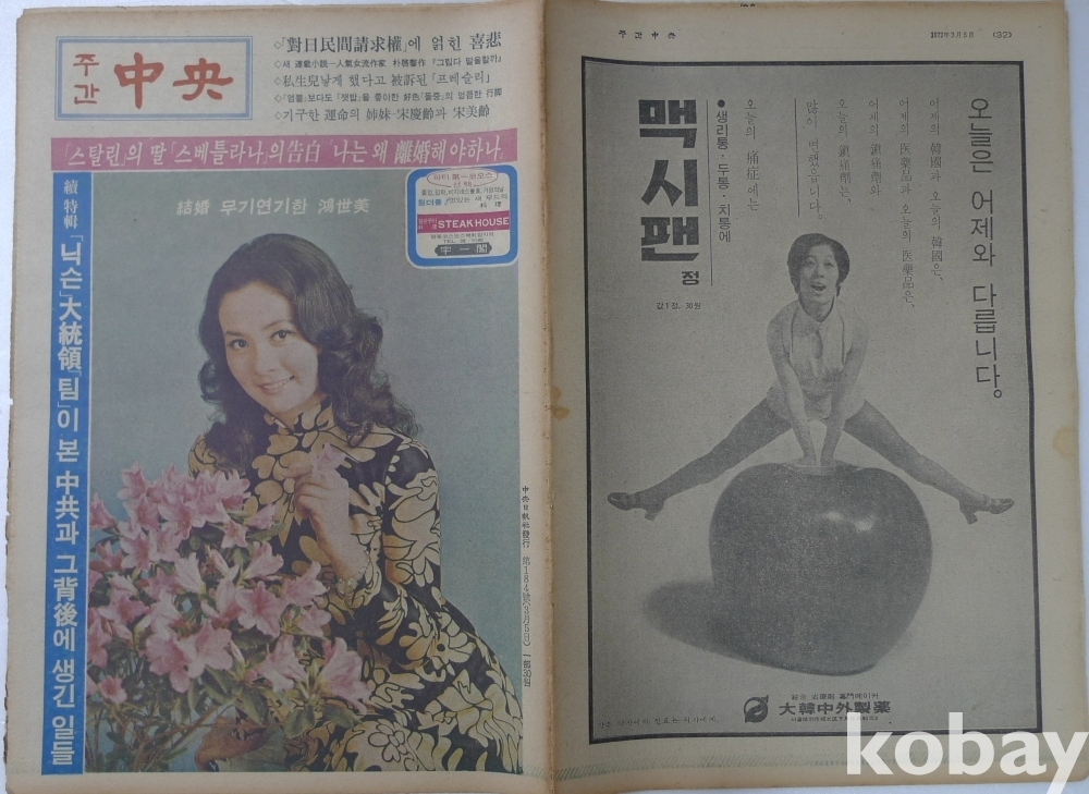 1972년 주간중앙 잡지 - 표지모델 영화배우 홍세미 -