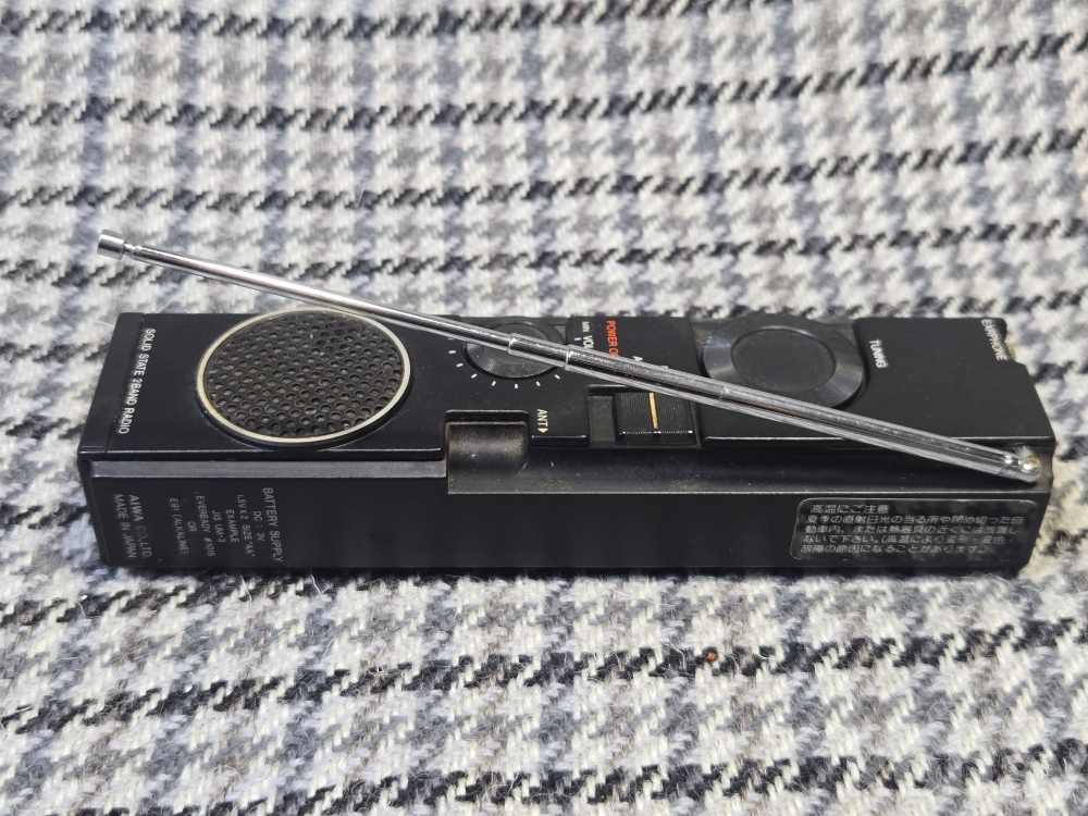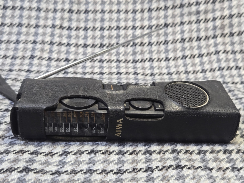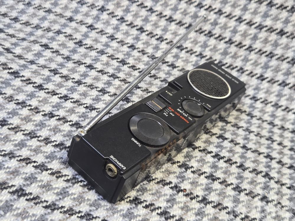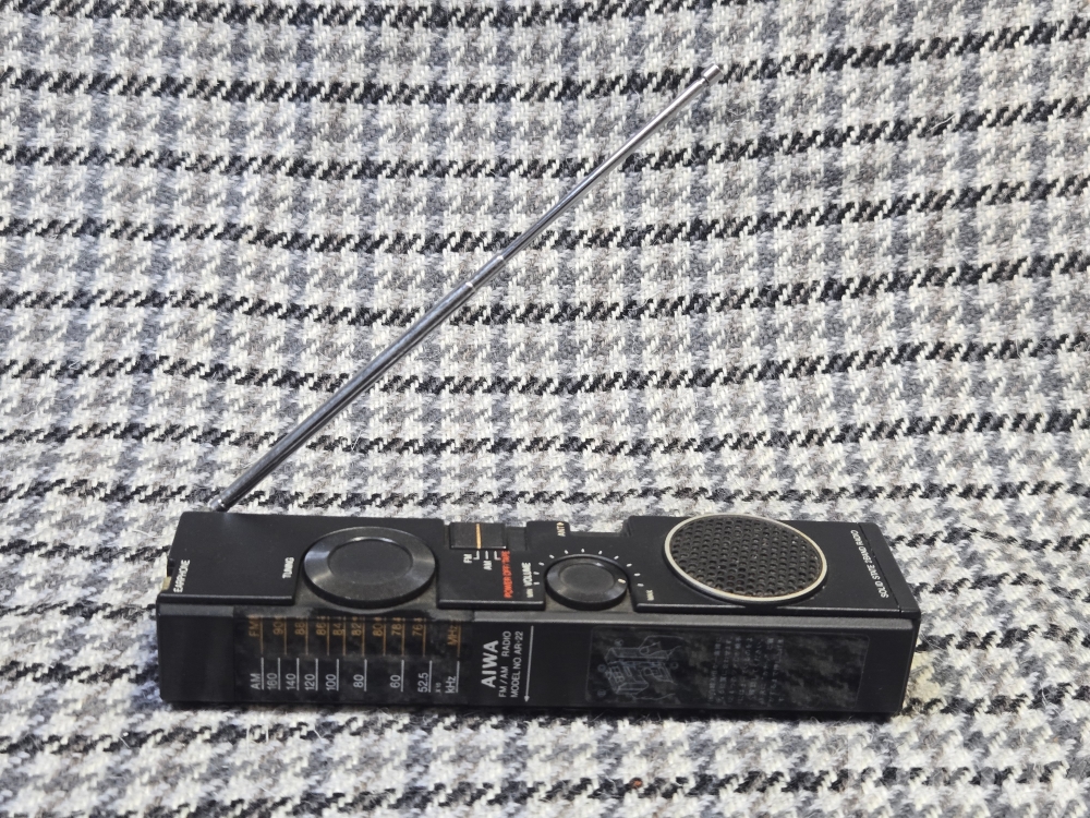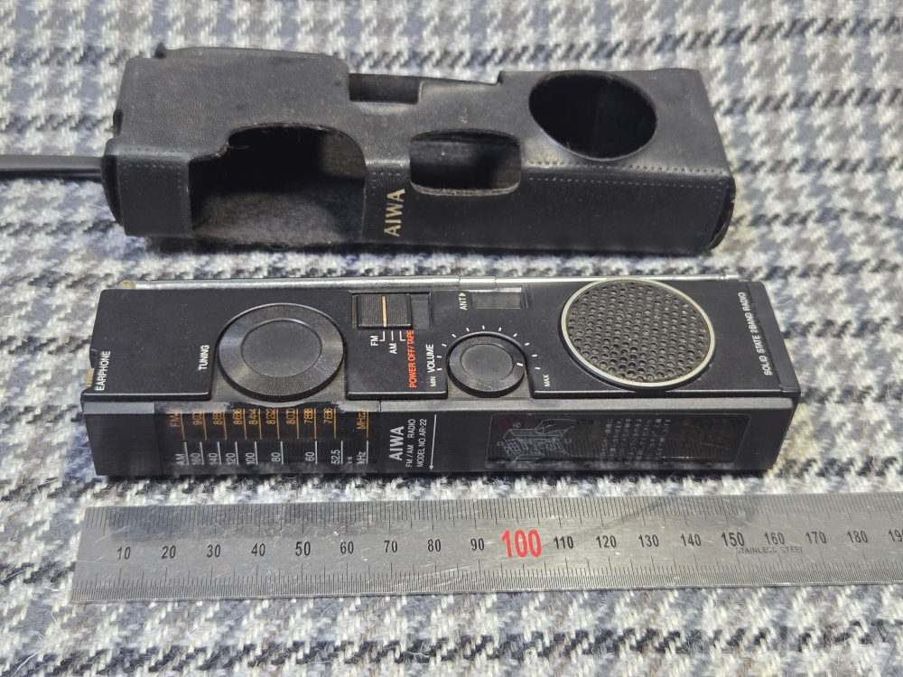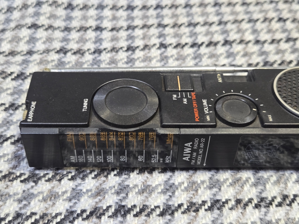 정상작동, 아이와 AIWA의 희귀 막대기형 스테레오 라디오 AR-22입니다. 워크맨, 붐박스에 추가로 부착될수 있도록 독특한 디자인으로 설계된 명기입니다.
