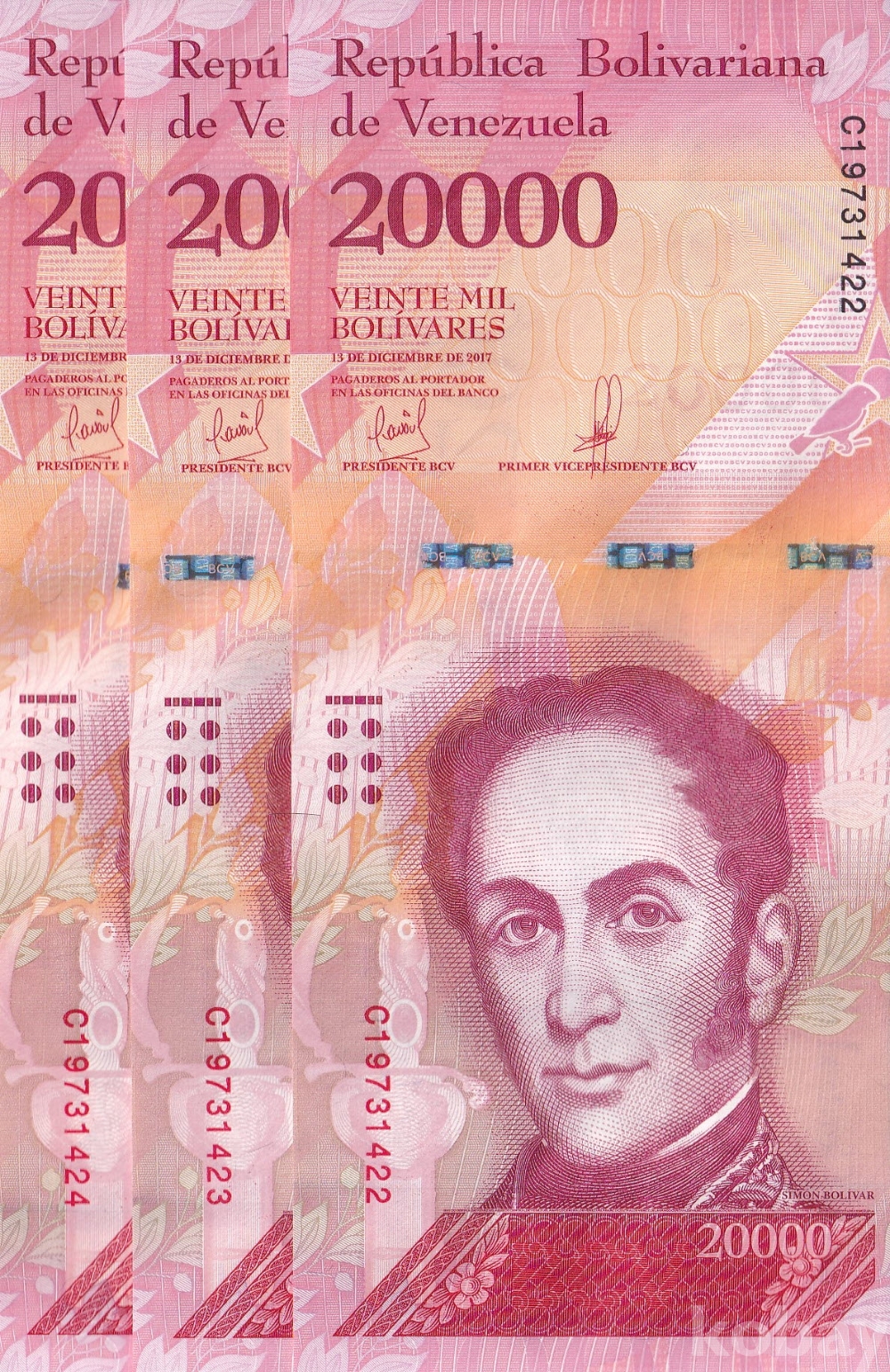 - 베네수엘라 2017년 20000 볼리바르 3연번 미사용 지폐