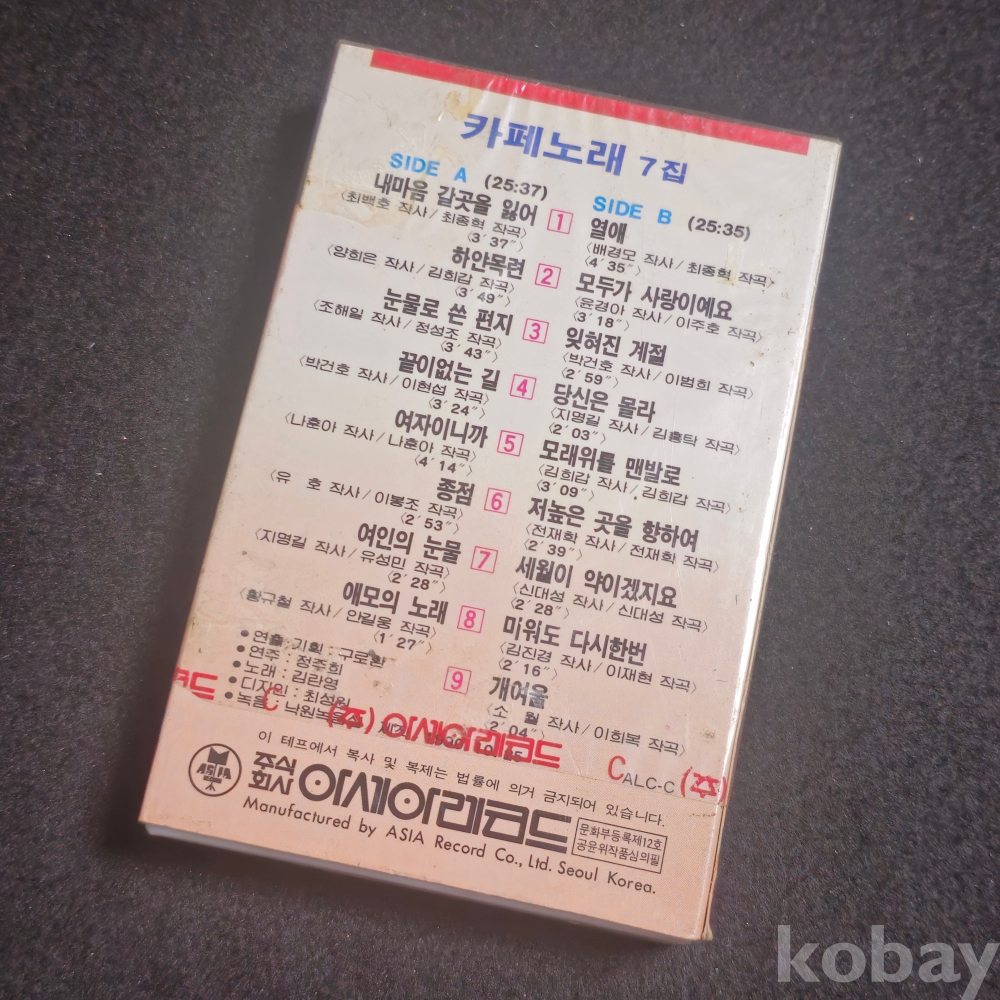 (천원경매) (((카세트테이프))) 카페노래 7집 (노래 : 김란영)  카세트테이프 (아세아레코드)
