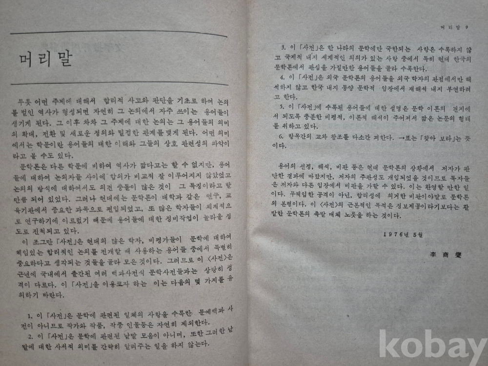 1976년 발간한 용어사전 『文學批評用語辭典』