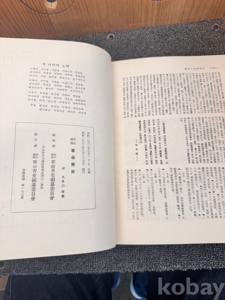 [한국현대사, 4.19혁명] 4월혁명 청사편찬회 , <민주한국 혁명청사>, 4월혁명 청사편찬회 , 1962년, p. 541, 상태 하급(책등과 내지 접착 부분 떨어짐, 사진참조)