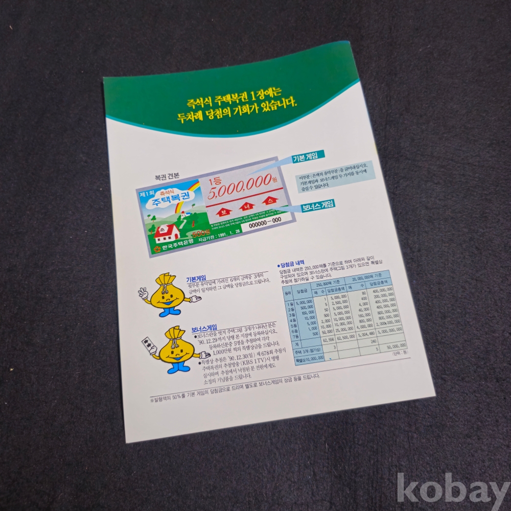 (((근현대사자료/은행자료))) 한국주택은행 즉석식주택복권 전단