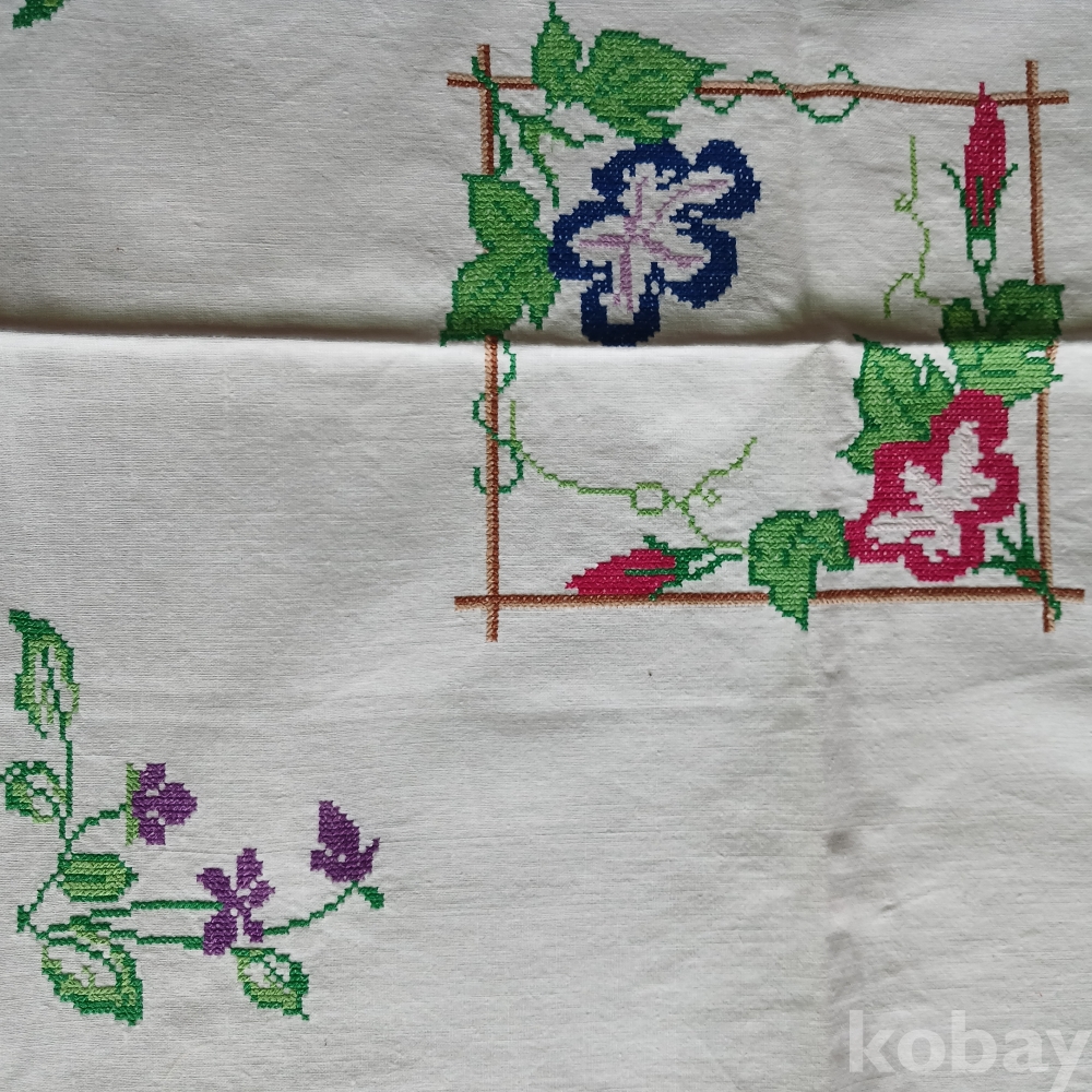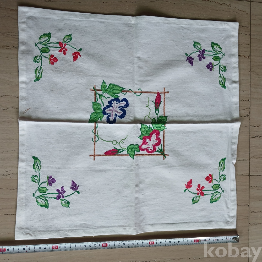 근대 십자수예 자수 상덥개 덮보 손수 실사용가능 튼실상태 섬유공예