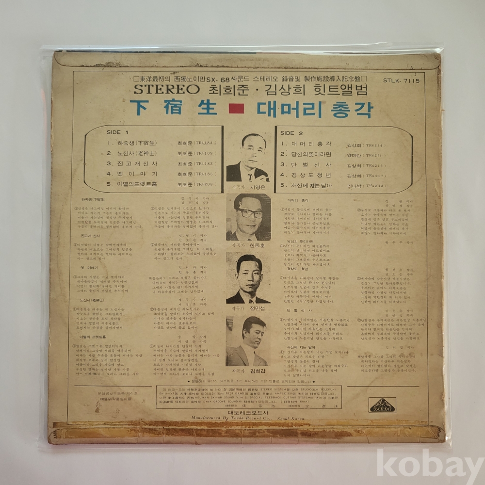 [추억의 희귀 LP 기획전] (최희준/김상희) 힛트앨범 / 하숙생 ☆ 대머리총각