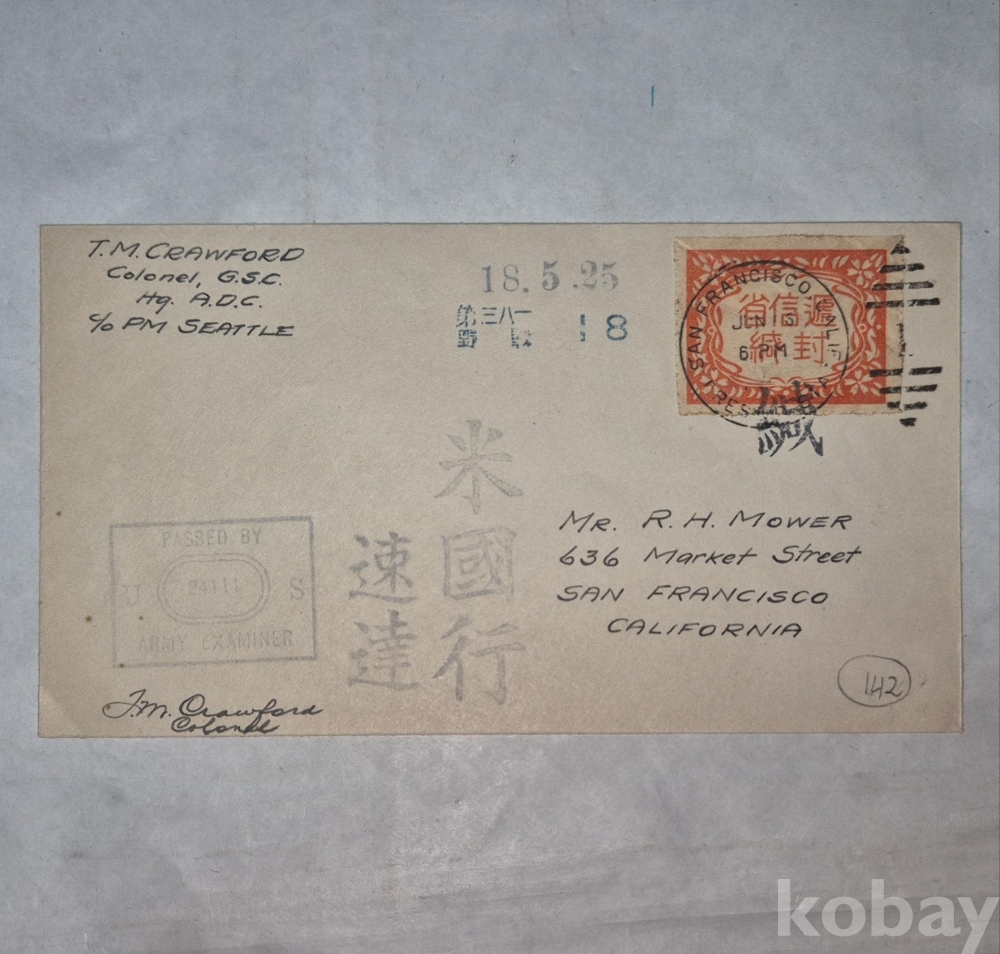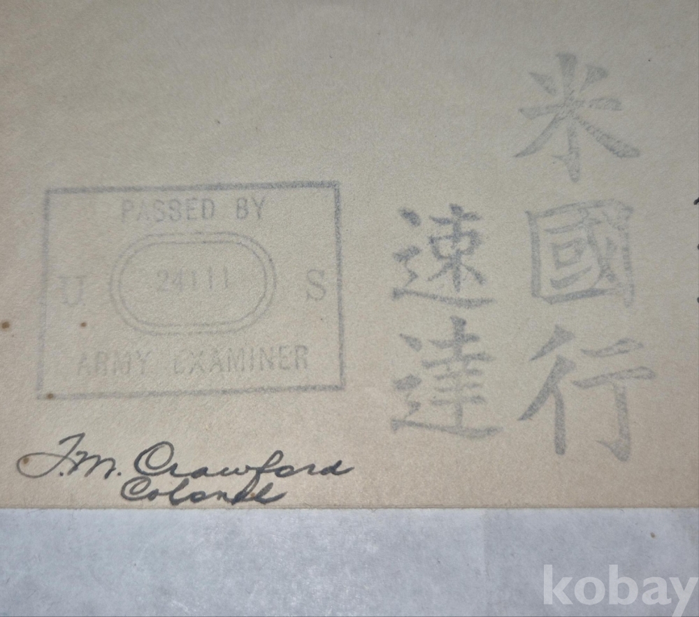 체신부 봉함지가 그대로 남아 있고 제24111 미군 검열인이 찍혀 있습니다.