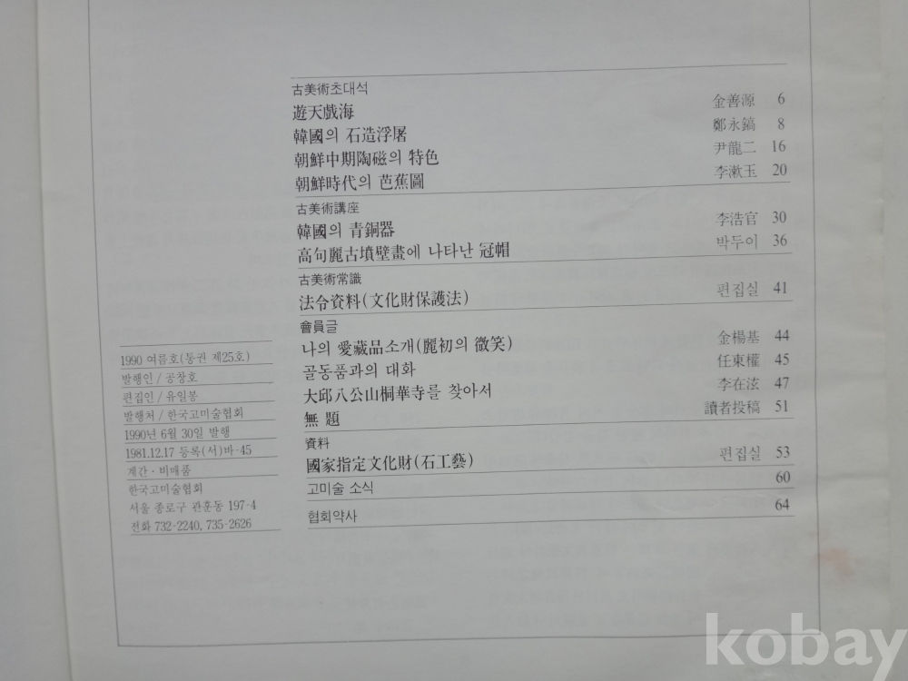 고미술 - 한국의 석조부도, 조선 중기 도자의 특색, 조선시대 파초도, 대구 팔공산 동화사를 찾아서 등 (1990년)