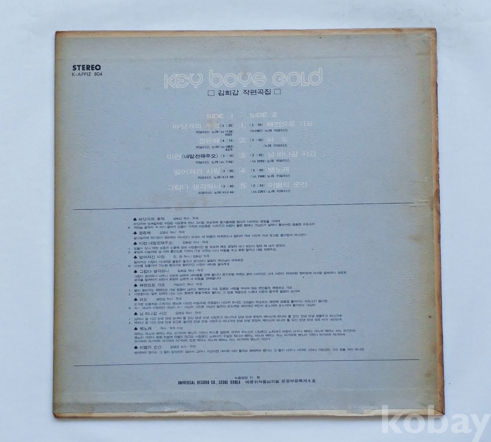 | 자켓상태 | EX : 약간의 마모, 모서리 찢김 존재 | 음반상태 | NM : 개봉했으나 미사용급, 스크래치 없음 | 발매정보 | 알수없음 | 가사지여부 | 무 |