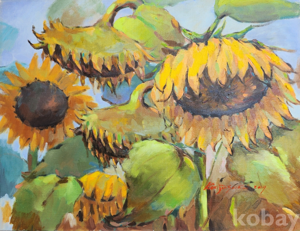 서양화가 "김진숙" 화백의 해바라기 유화 作品 < 서양화 10호 작품 >