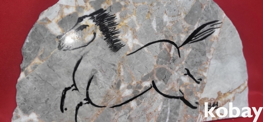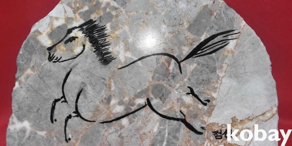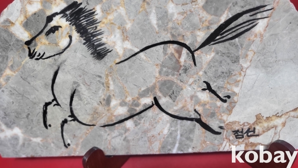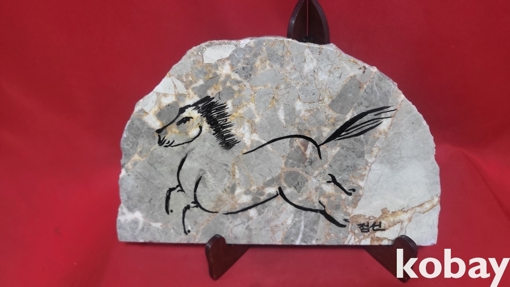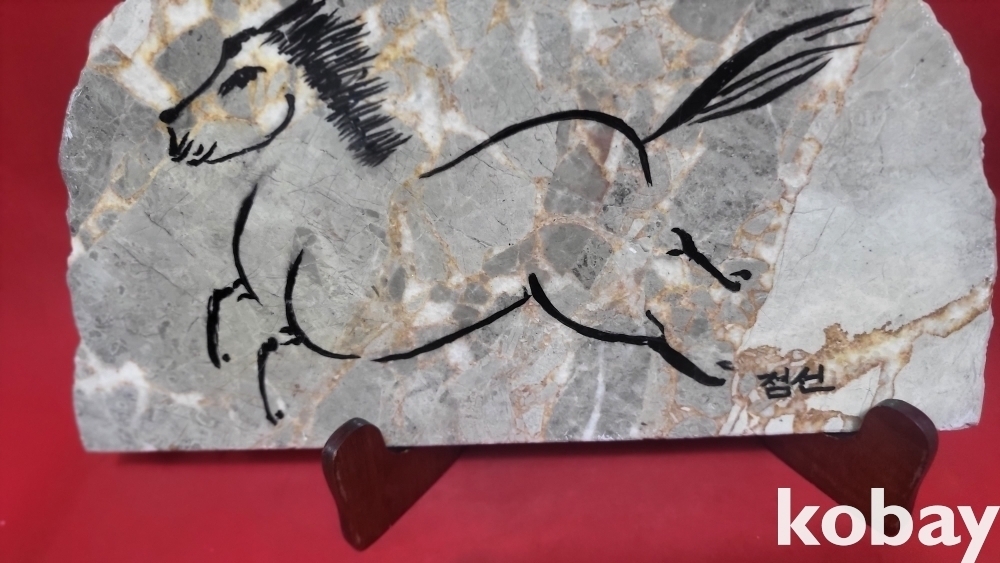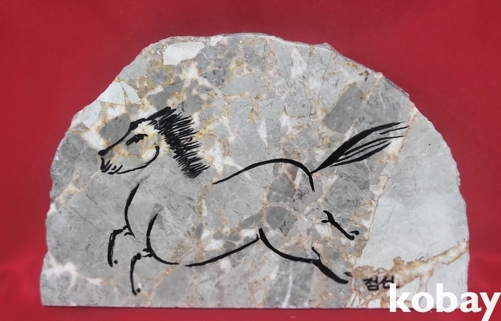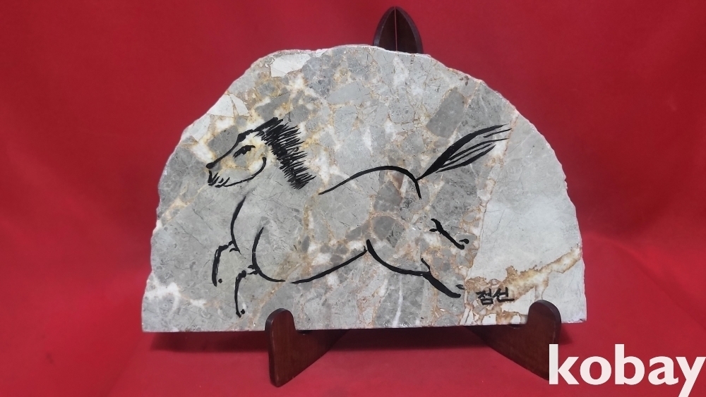 대리석(연마석)에 "점선" 사인이 보이는 말그림입니다,