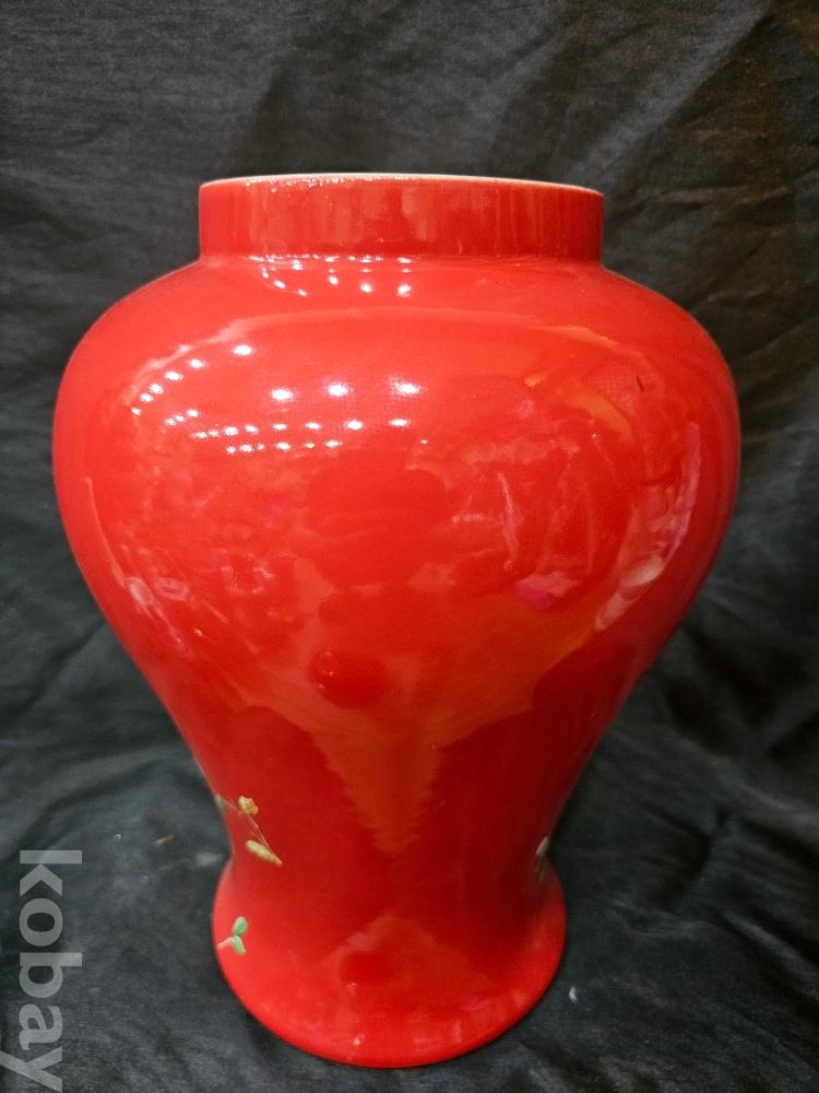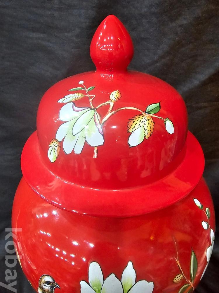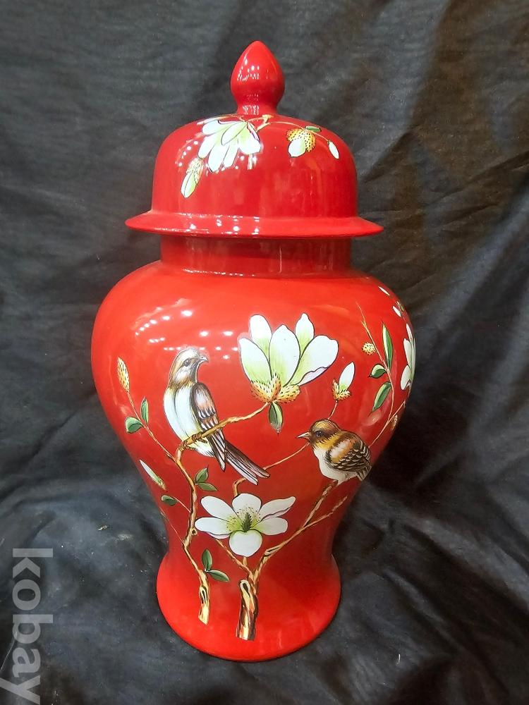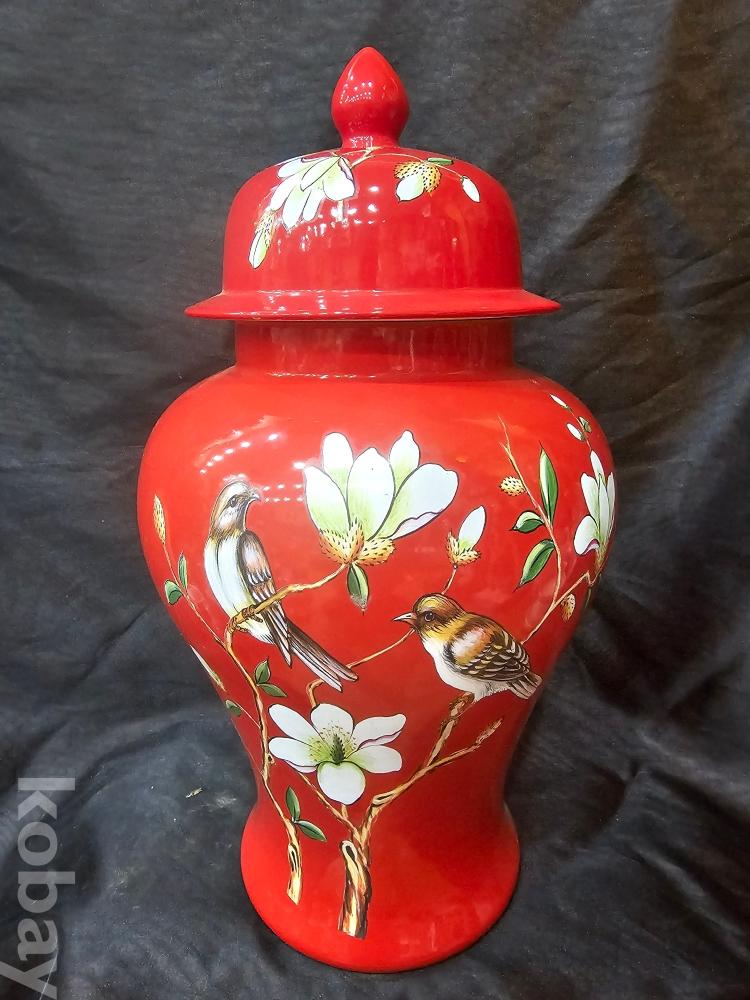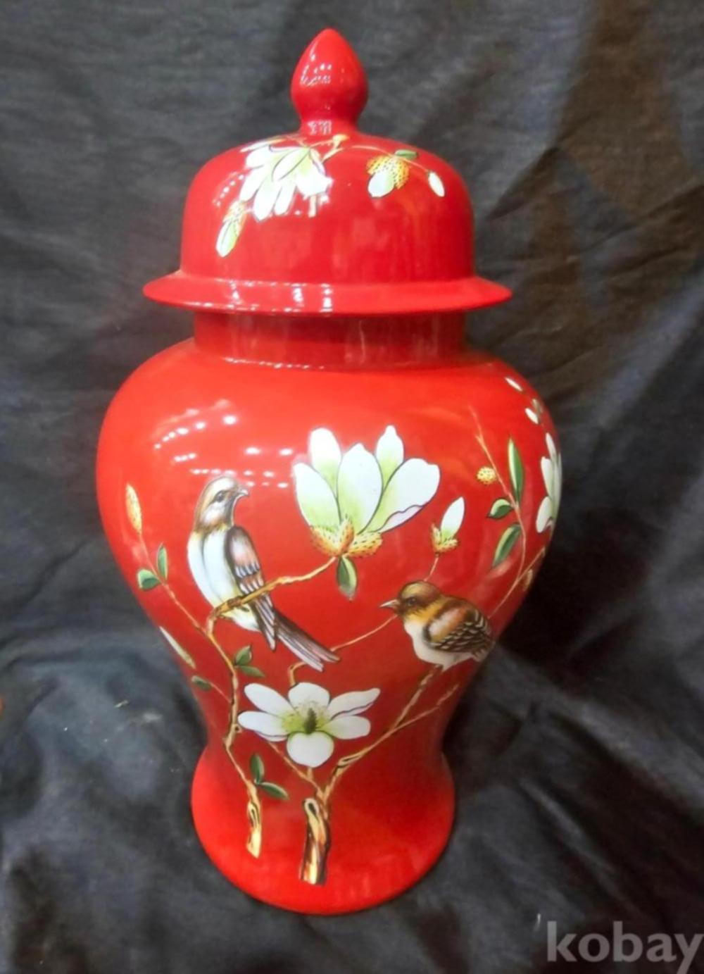 중국도자기 / 홍유바탕에 화조도가 그려져있는 개관호