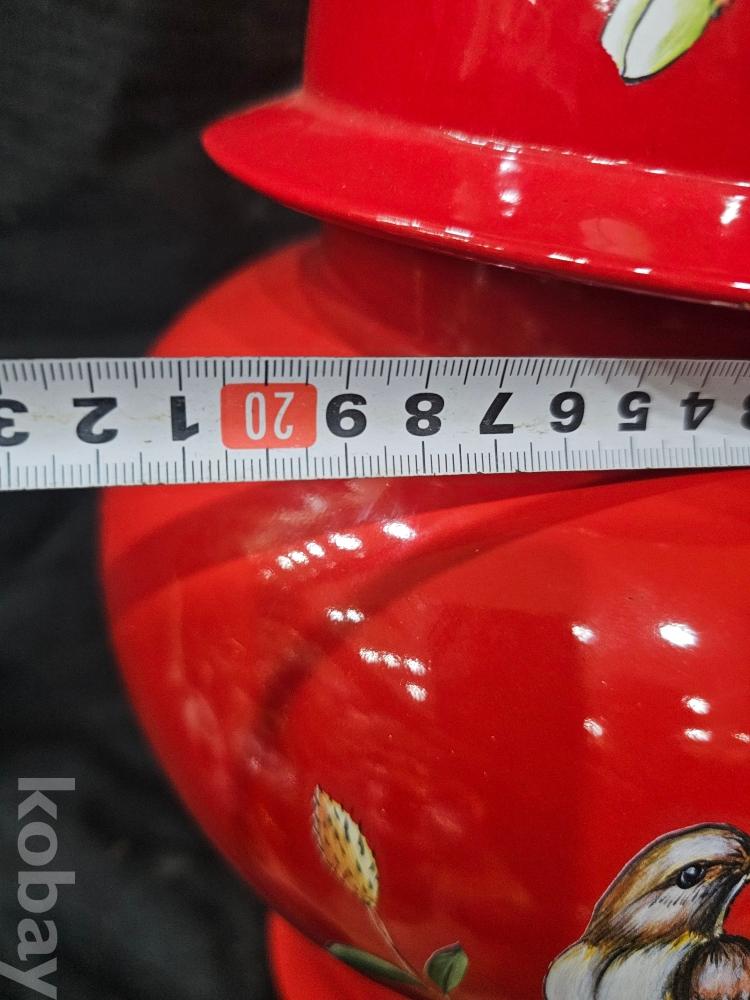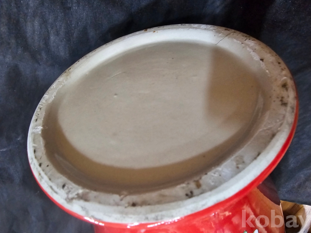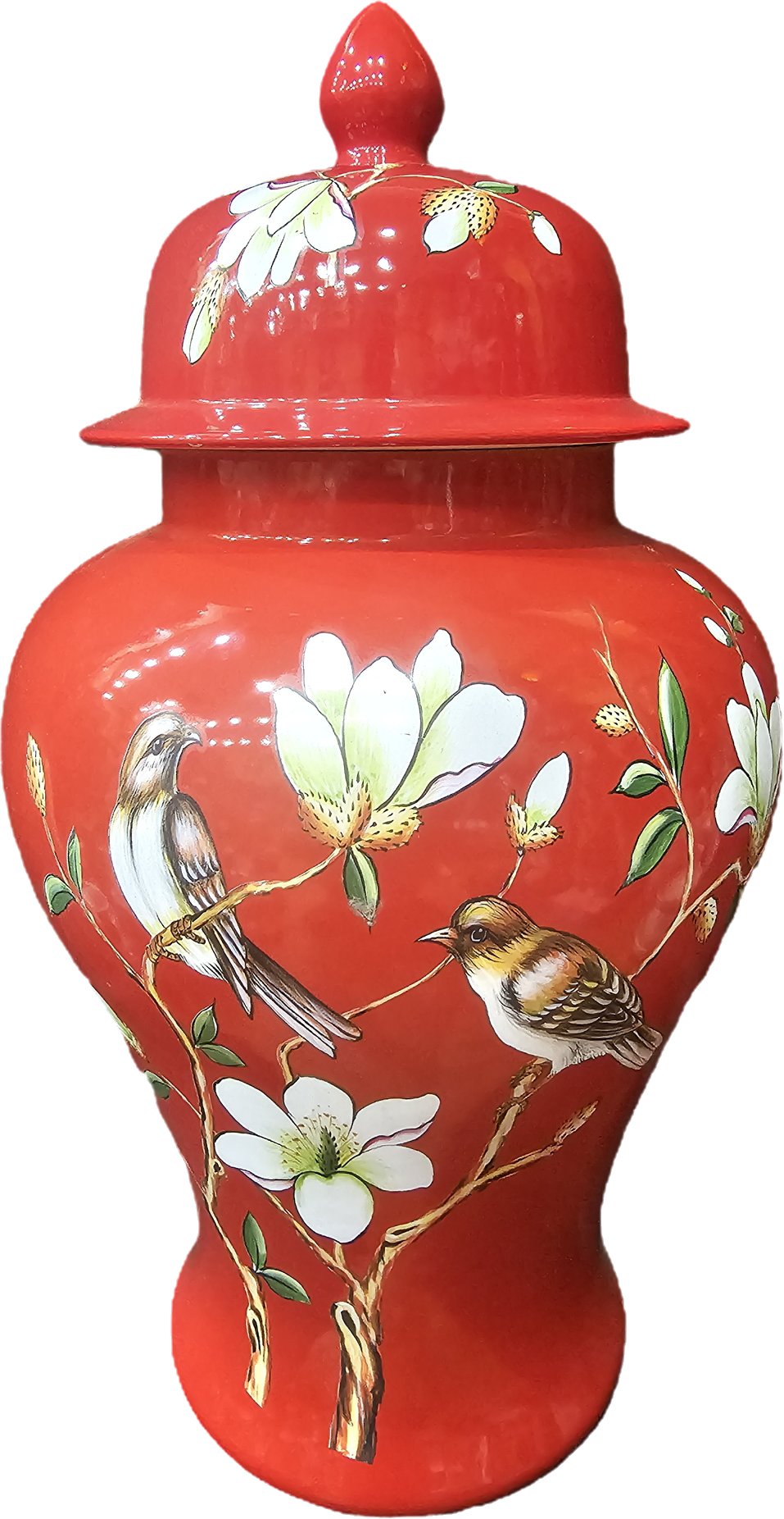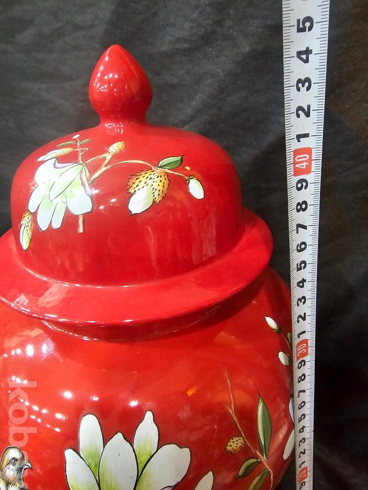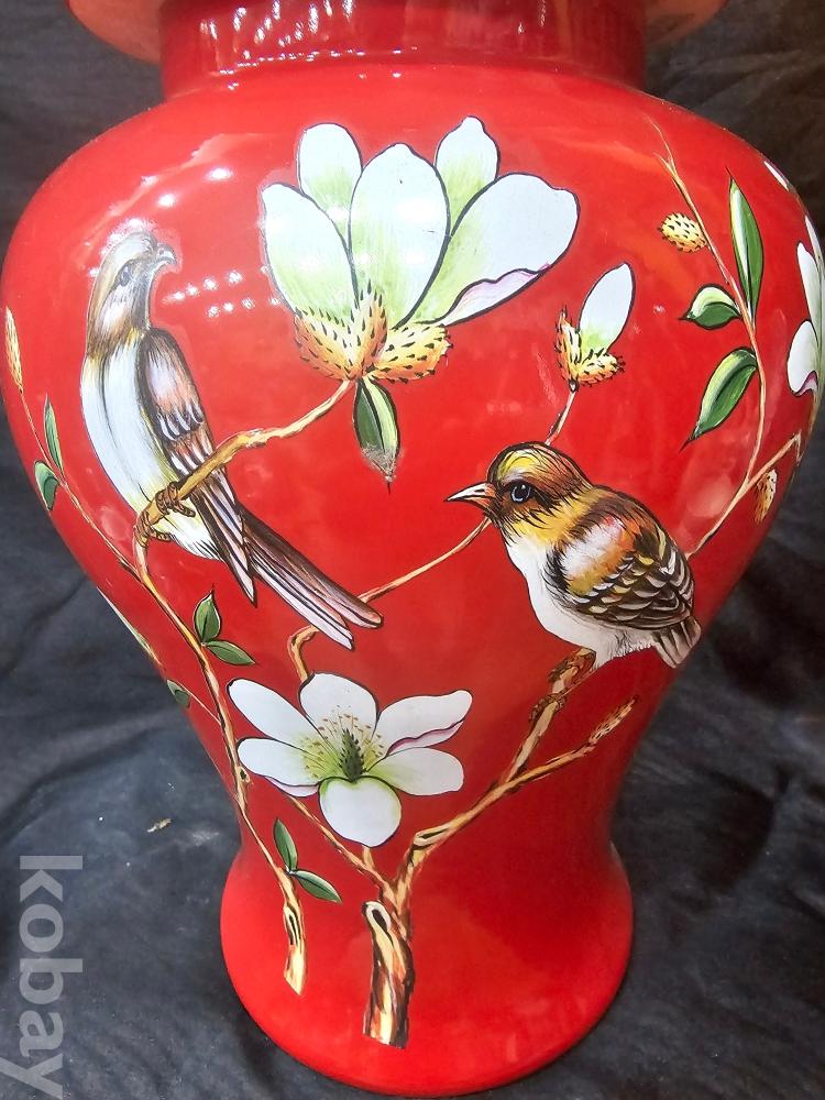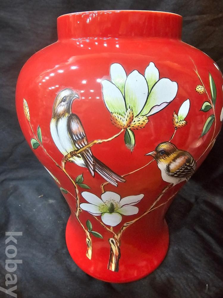 중국도자기 / 홍유바탕에 화조도가 그려져있는 개관호