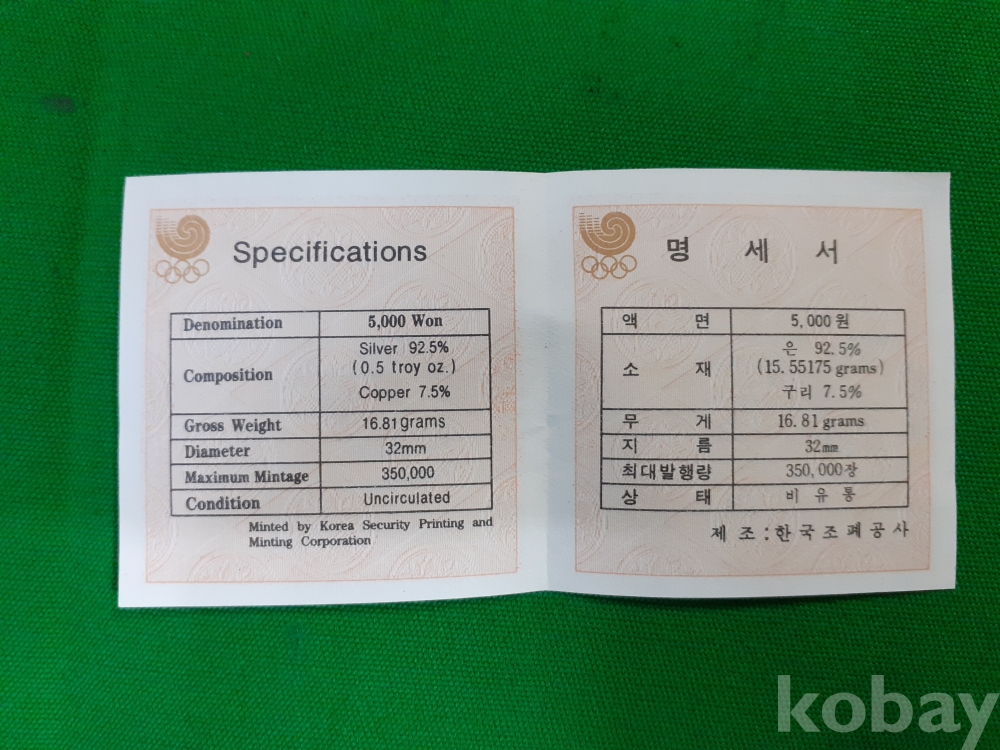 종이케이스는 얼룩 등 세월의 흔적 있지만 플라스틱 케이스 및 동전은 미 사용으로 상태 좋습니다