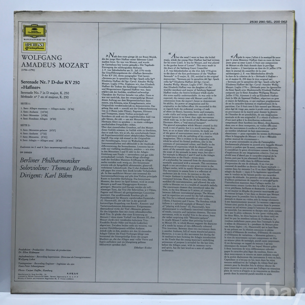 LP 35,050-15 Mozart - Haffner Serenade - Thomas Brandis . ` 75 성음 자켓 EX+ 알판 NM