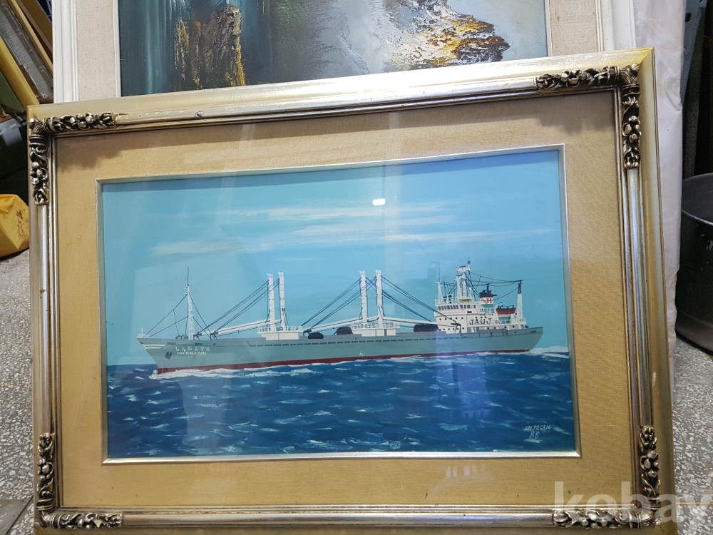 사진처럼 정교한 바다와 배 그림 유화1점 입니다