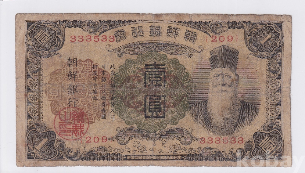 -희귀- 조선은행 지폐 모음展 5 - 1932년 개 일원 - 투디지트 3335333판번호 209번 유번호권 사용제 지폐