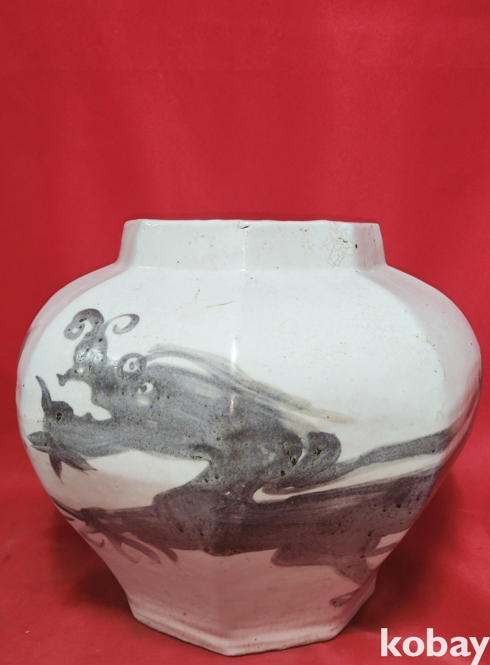 연대가 매우 좋은 백자 흑용문 8각 항입니다,