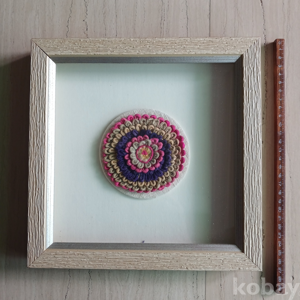 헝겁을 가늘게 말아 붙인 헝겁수 베갯모입니다ㆍ솔방율에 잣이 박혀있는듯하여 잣베기 수라고도 한다네요ㆍ 특이 하면서도 정성이 보이는 우리 전통기법입니다ㆍ 귀한 자료입니다 ᆢ 수집가 박물관 추천 합니다 ㆍ액자된 상태라 바로 걸면됨니다 ᆢ