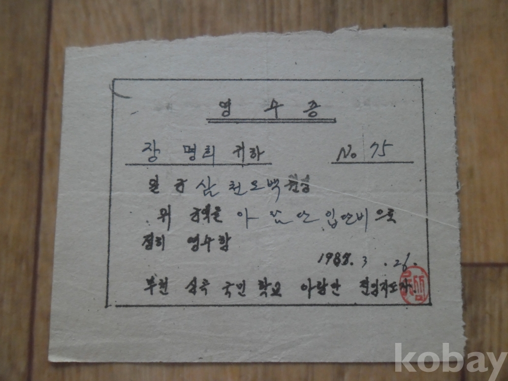 1987년 부천심곡국교 아람단 입단비 영수증