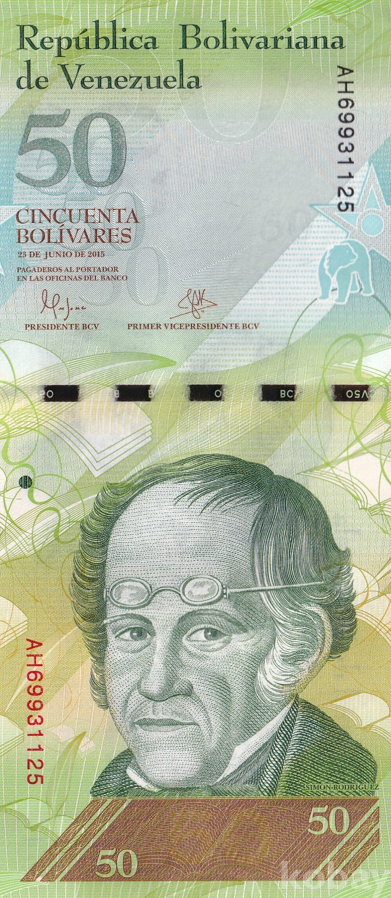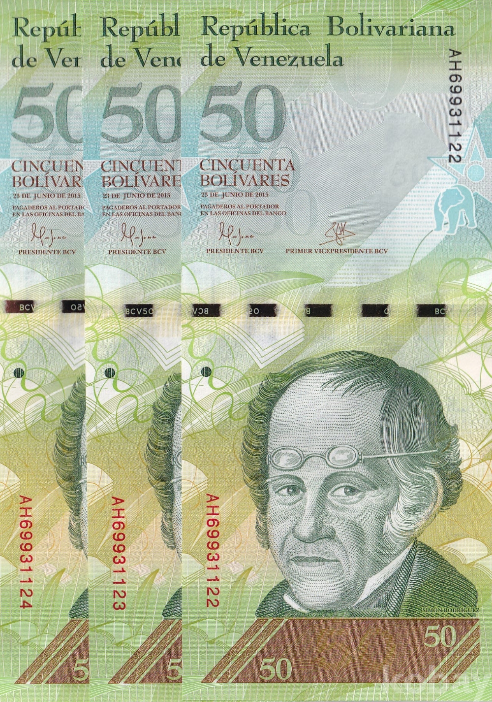 - 베네수엘라 2015년 50 볼리바르 3연번 미사용 지폐