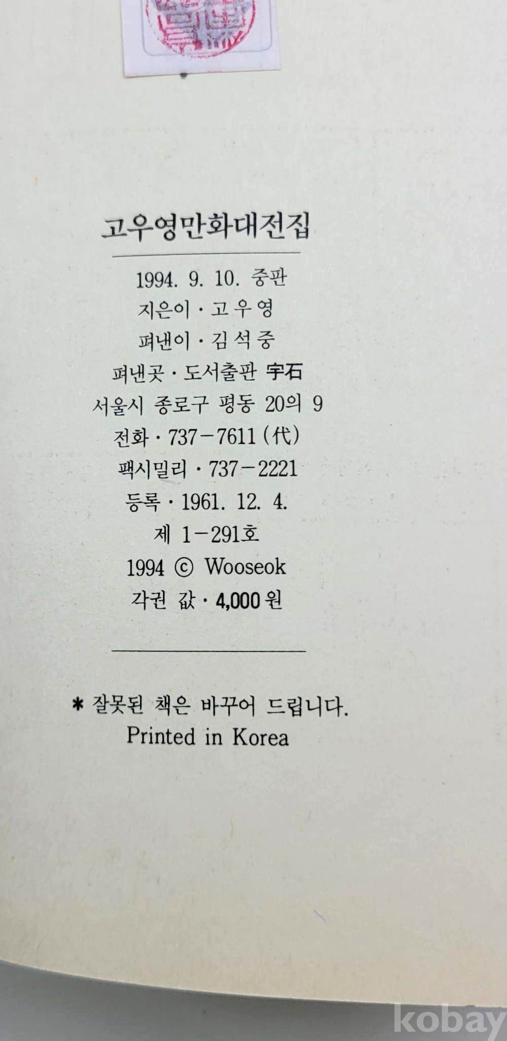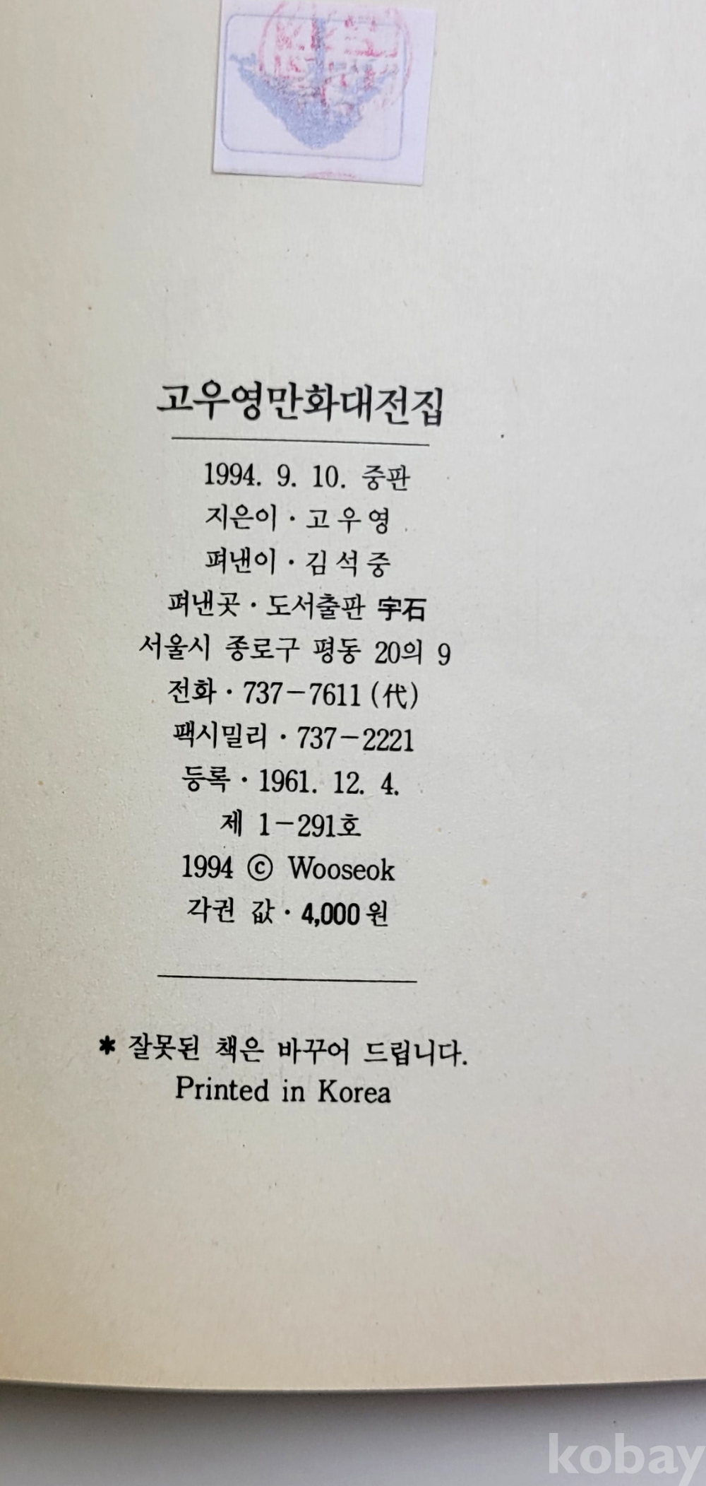 물 품 명 | 열국지 (1)(2)(3)(4) 총4권 - 고우영만화대전집 (14.15.16.17) / 1994년 / 도서출판 우석 |