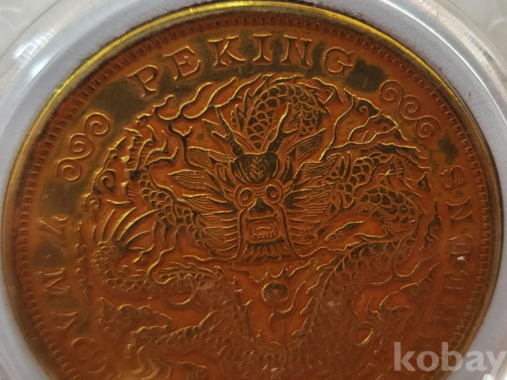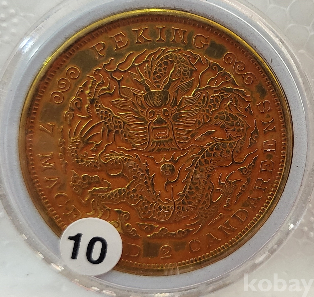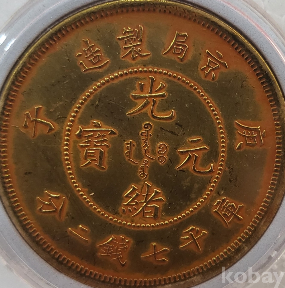 광서원보( (光緒元寶) 표기가 보이는 금색 주화입니다.