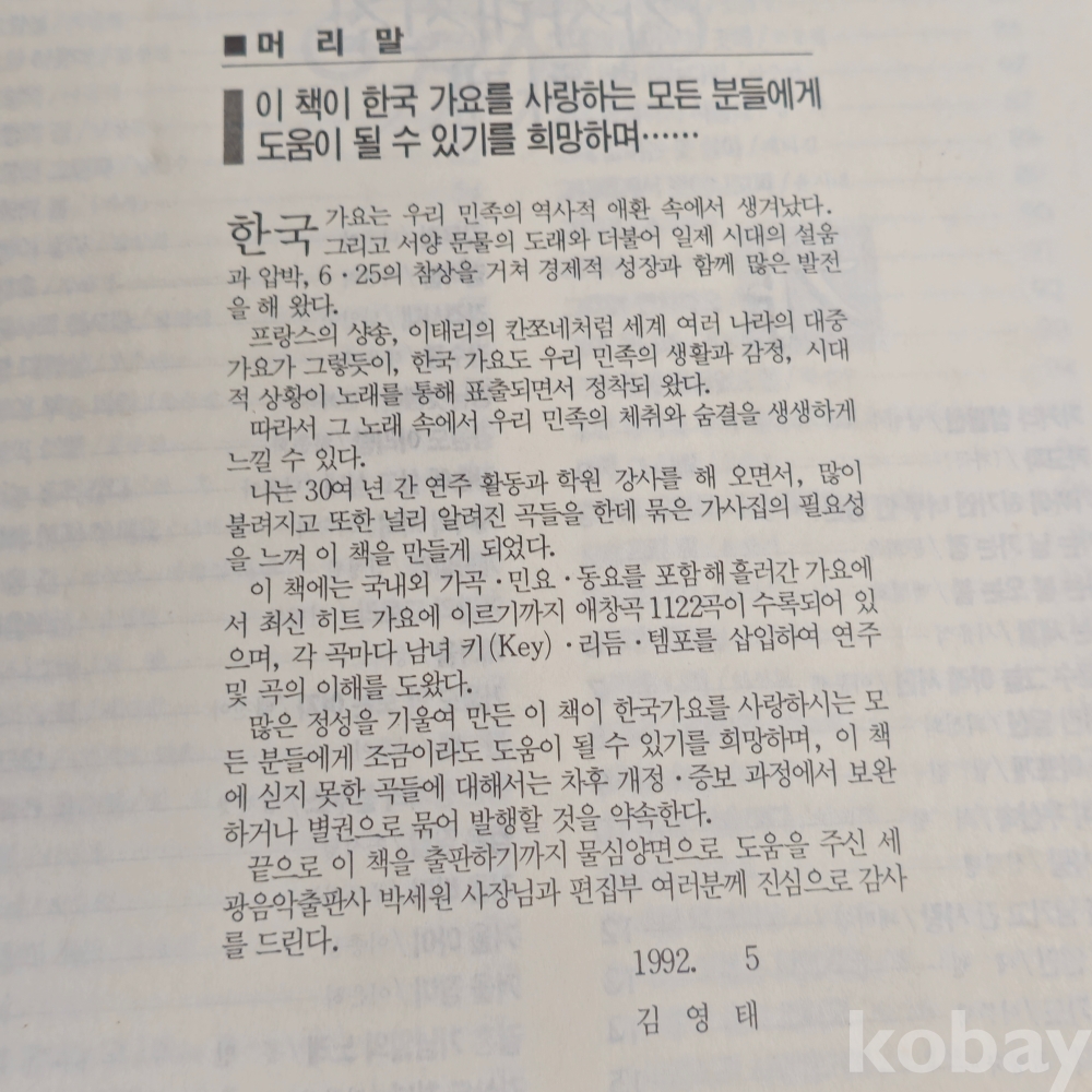 (((서적/음악서적))) 1992년 세광음악출판사에서만든 한국가요 가사대전집