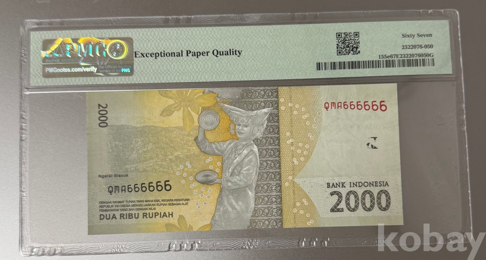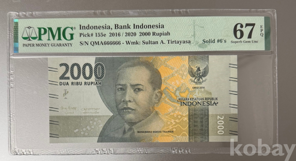 인도네시아 2016년 2000루피아 솔리드 “666666” PMG 67 EPQ