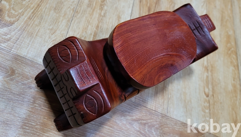 35x11cm 40여년전 너무도 잘알려진 진주시 인사동 목공장인이 전국적으로 용목느티나무 장롱과 애기장 등 목공 가구 재현품을 만들어 고가에 큰 인기를 누렸던 그분 장인의 작품입 니다