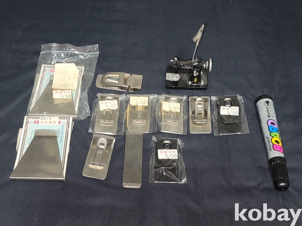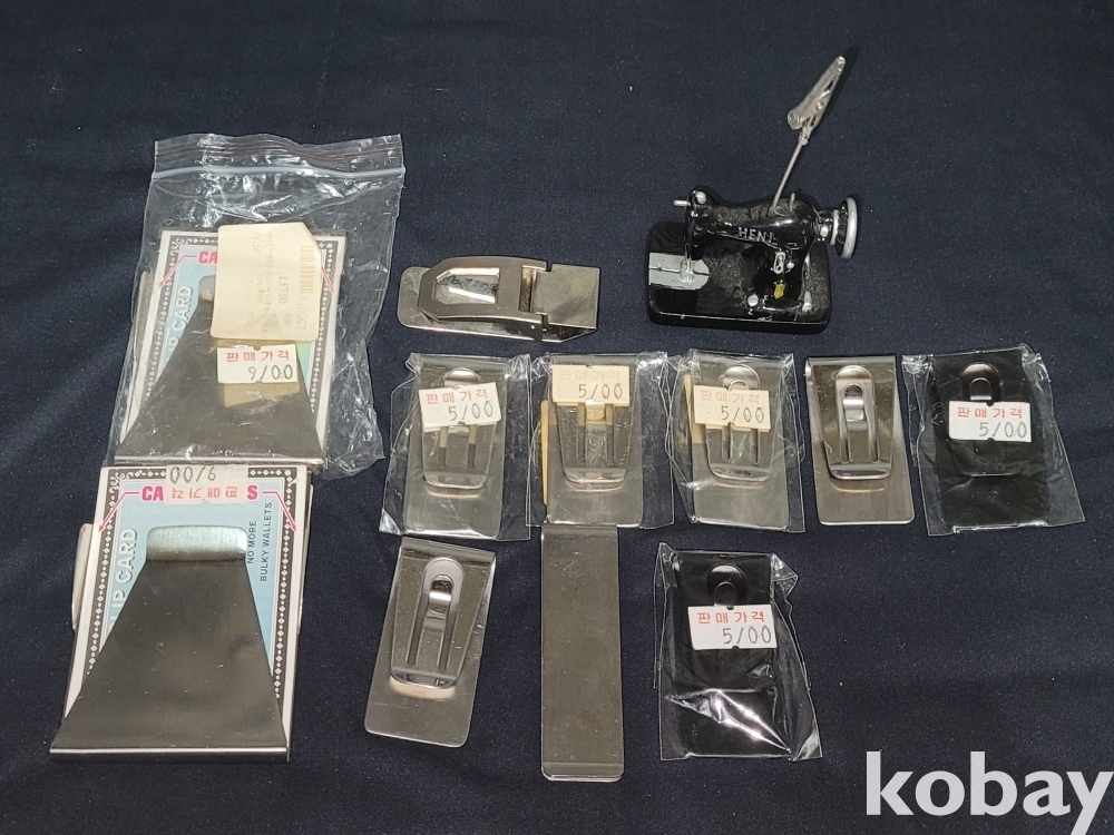 특이한 재봉틀 모형 등 지폐, 카드, 종이 등을 꽂을 수 있는 빈티지 폴더 클립 12종 일괄입니다.