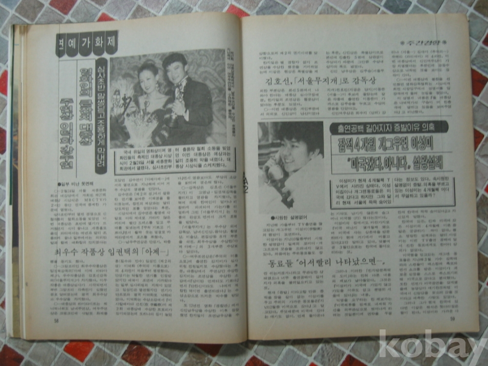 1989년 주간경향 잡지 - 표지모델 영화배우 최미선 -