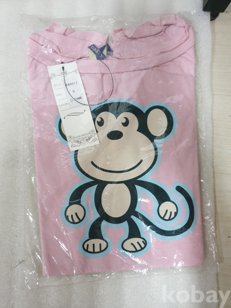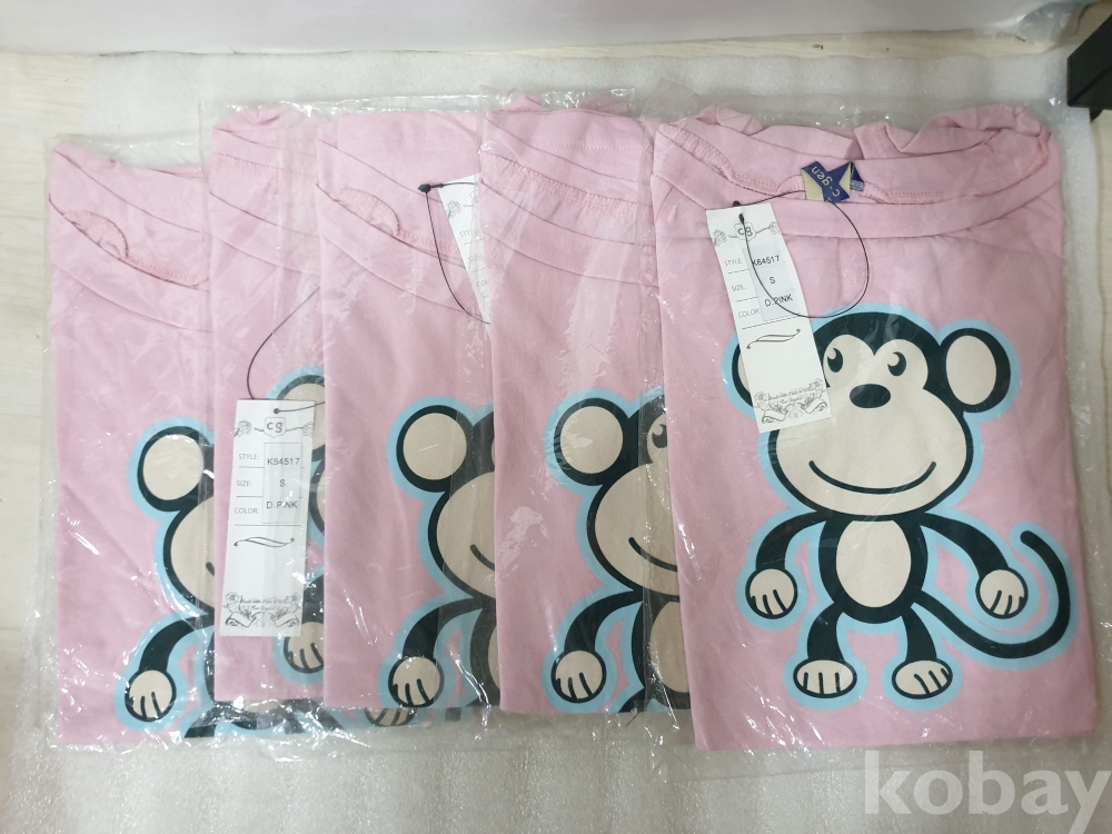 {천원경매} 10-0676 핑크 원숭이그림 반팔 티셔츠 5개(S) - 블루색 사진은 디자인 참고 사진입니다.
