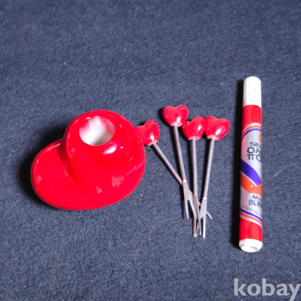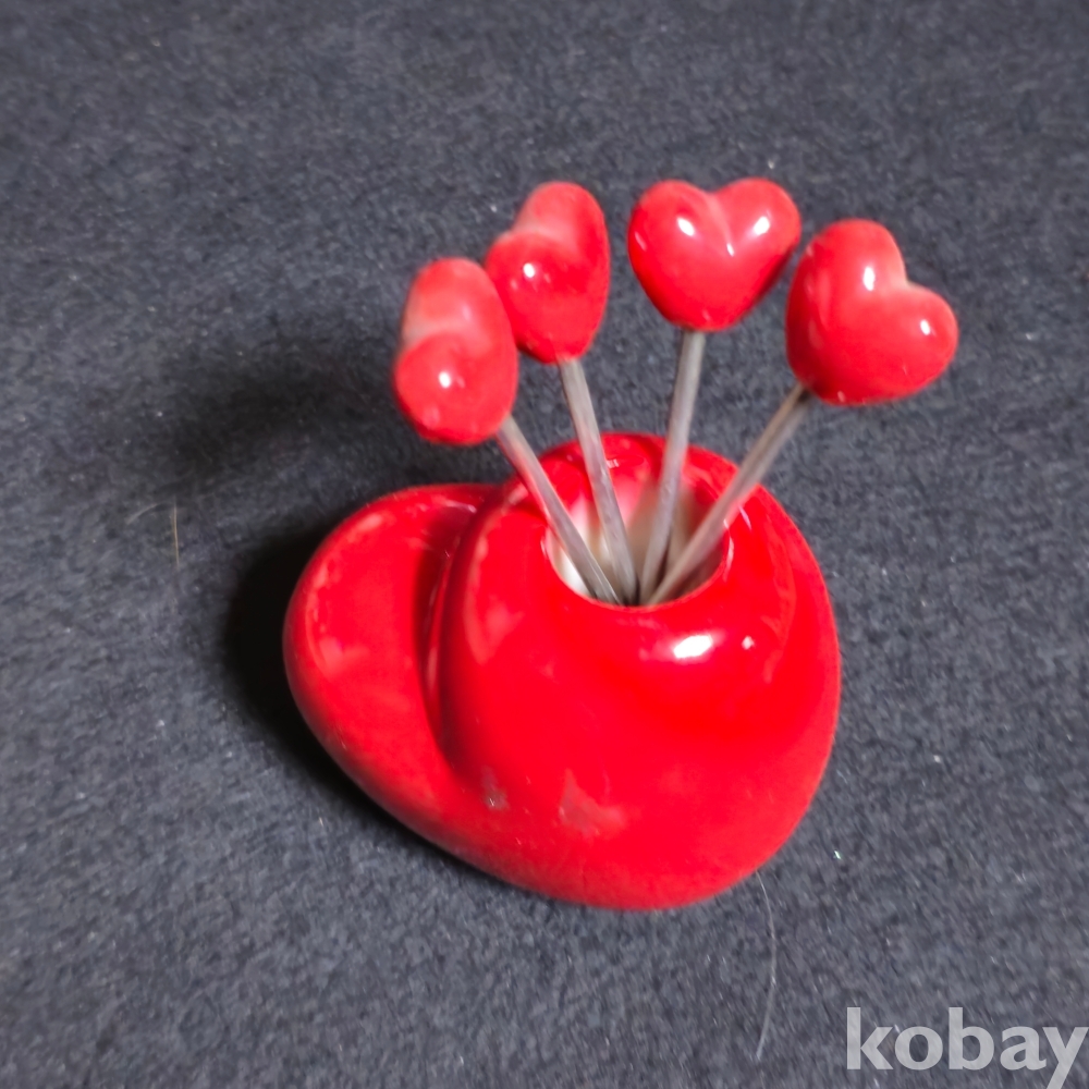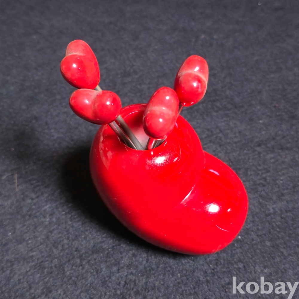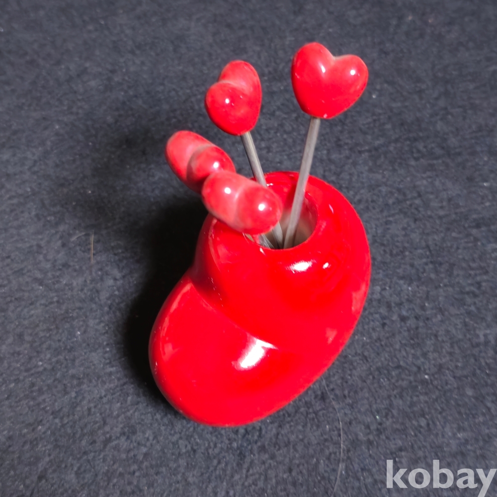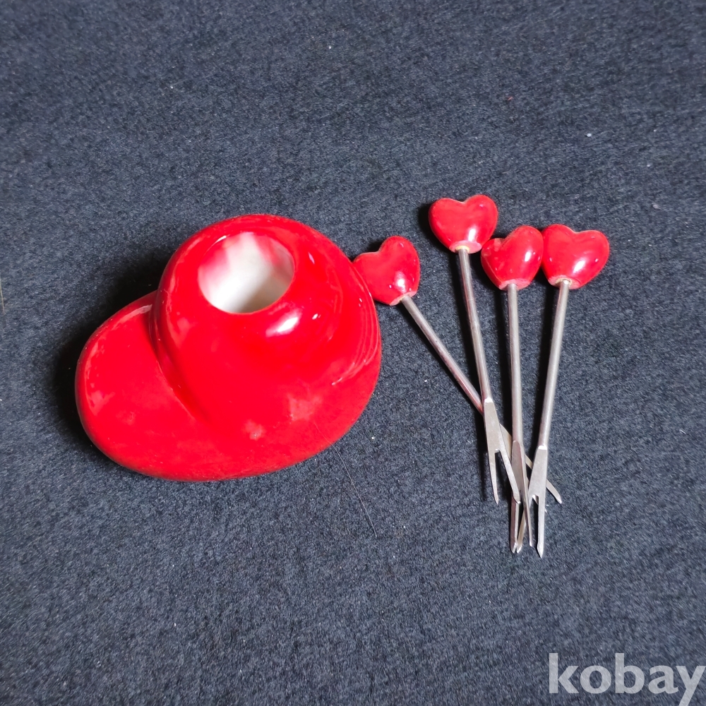 (((인테리어소품))) 마블재질 빨간하트모습 티포크 4개와 티포크 함 (케이스)