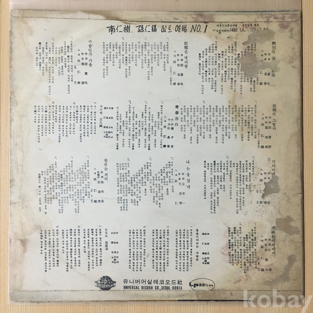 . 가요음반 대부분은 휘어짐이나 손상을 방지하기 위해 무지싱글자킷을 하나 더 사용하여 보관되었던 음반들입니다.