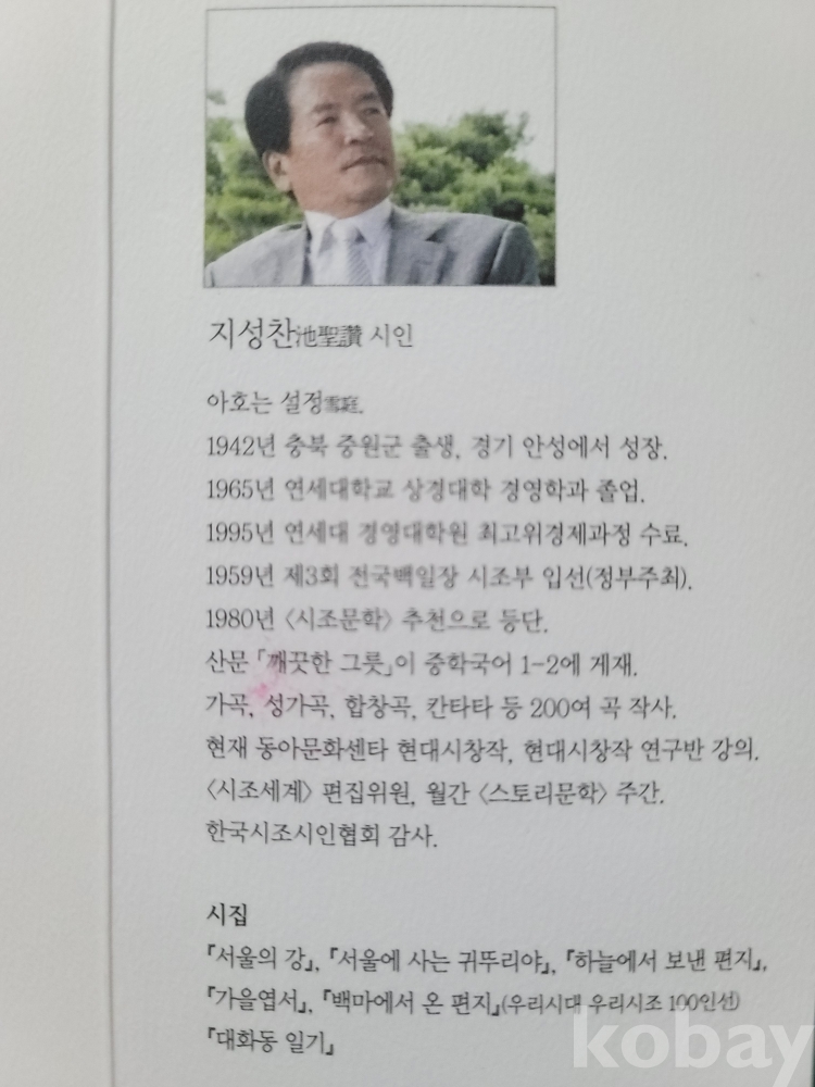 지성찬(충청북도 충주: 1942) 저자서명 시조집.