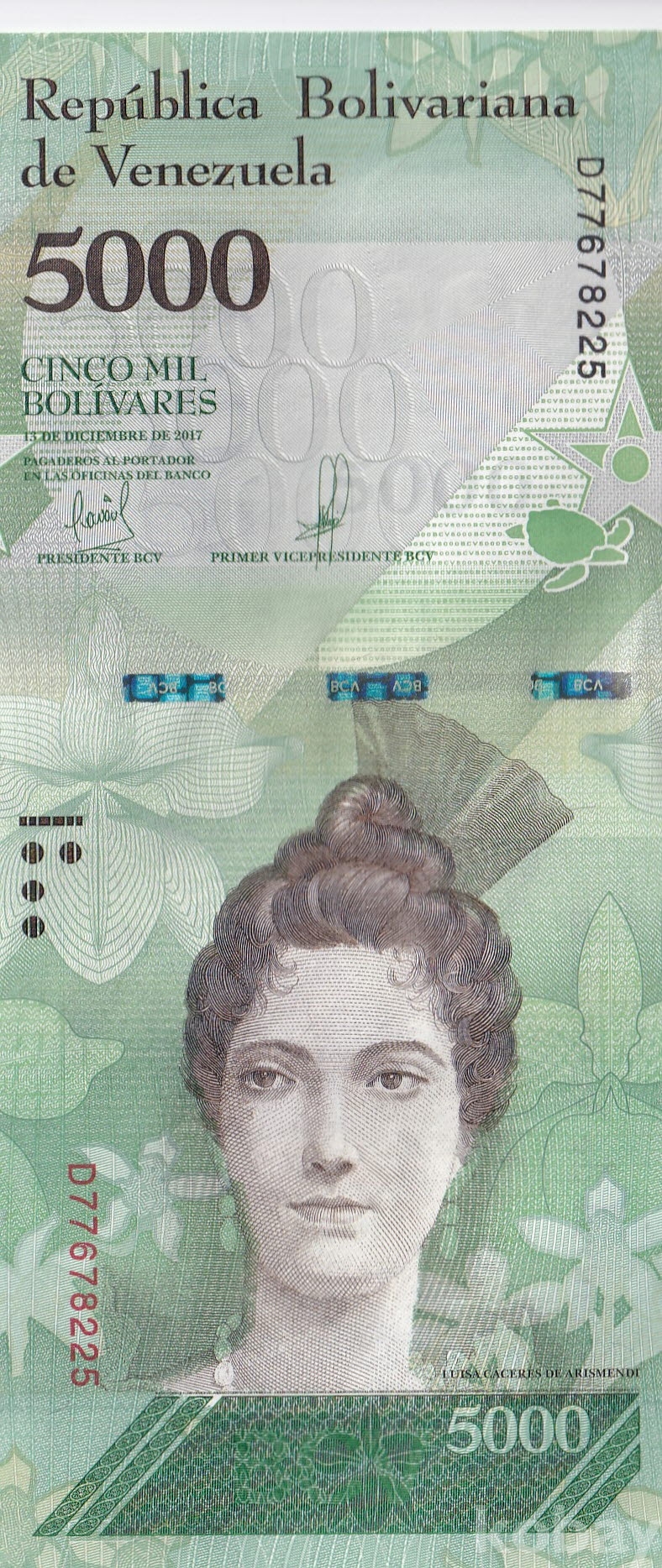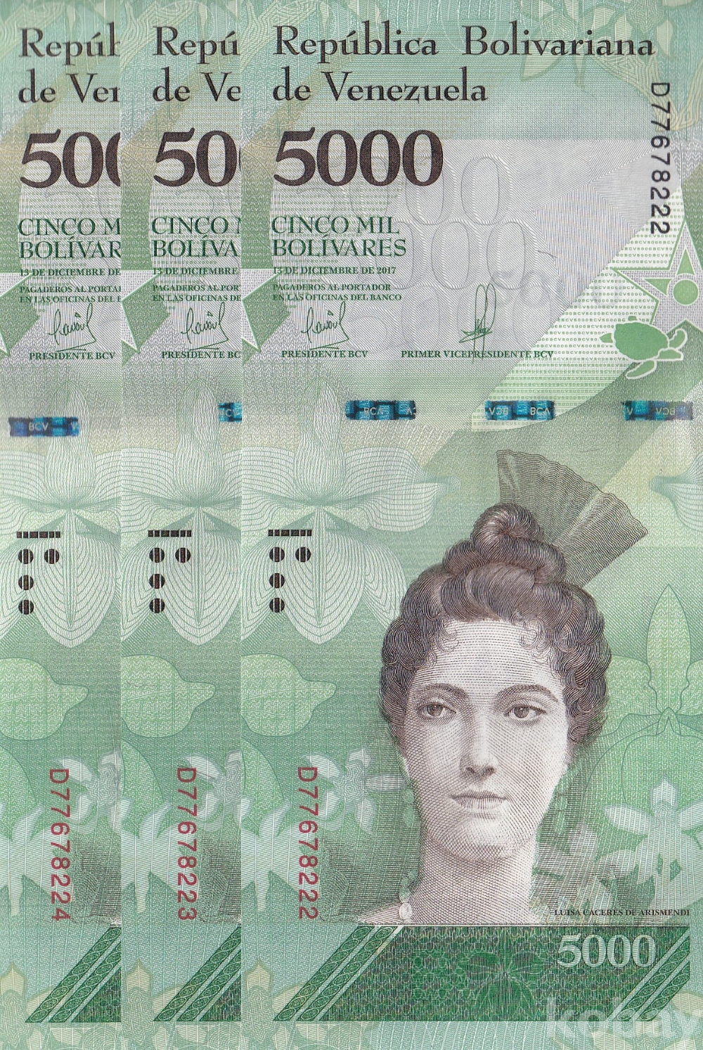 - 베네수엘라 2017년 5000 볼리바르 3연번 미사용 지폐