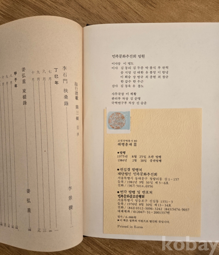 [조선시대사, 조선통신사, 부삼록, 동사록 등] <고전국역총서 해행총재 3,>, 민족문화추진회, 1974, p. 436, 상태 중상급(사진참조)