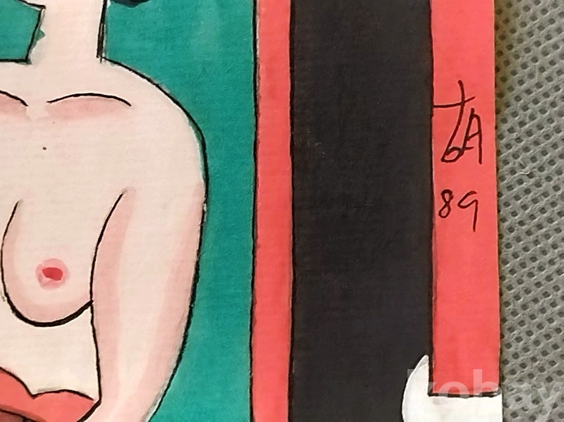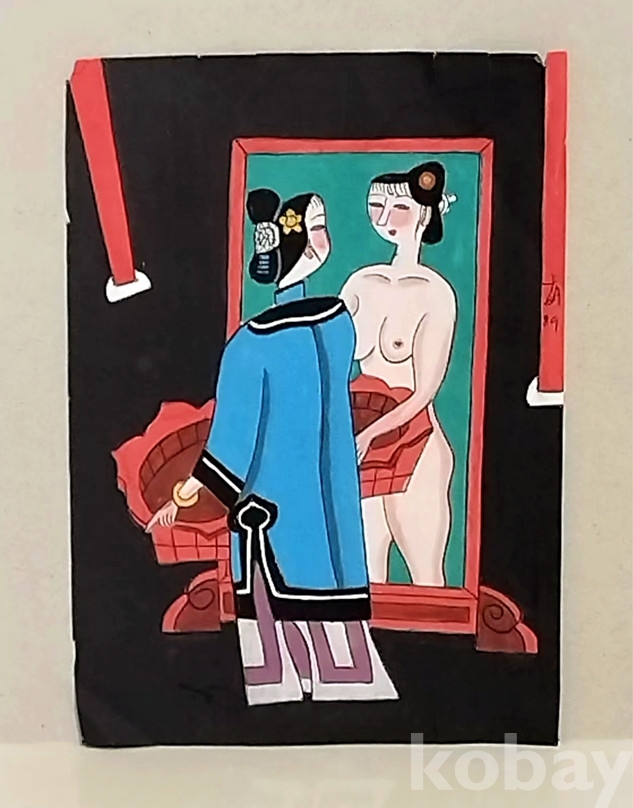 중국 현대 신미인도 개척자 호영개(胡永凯) 1989년 수채화 仕女图(미인도) 2
