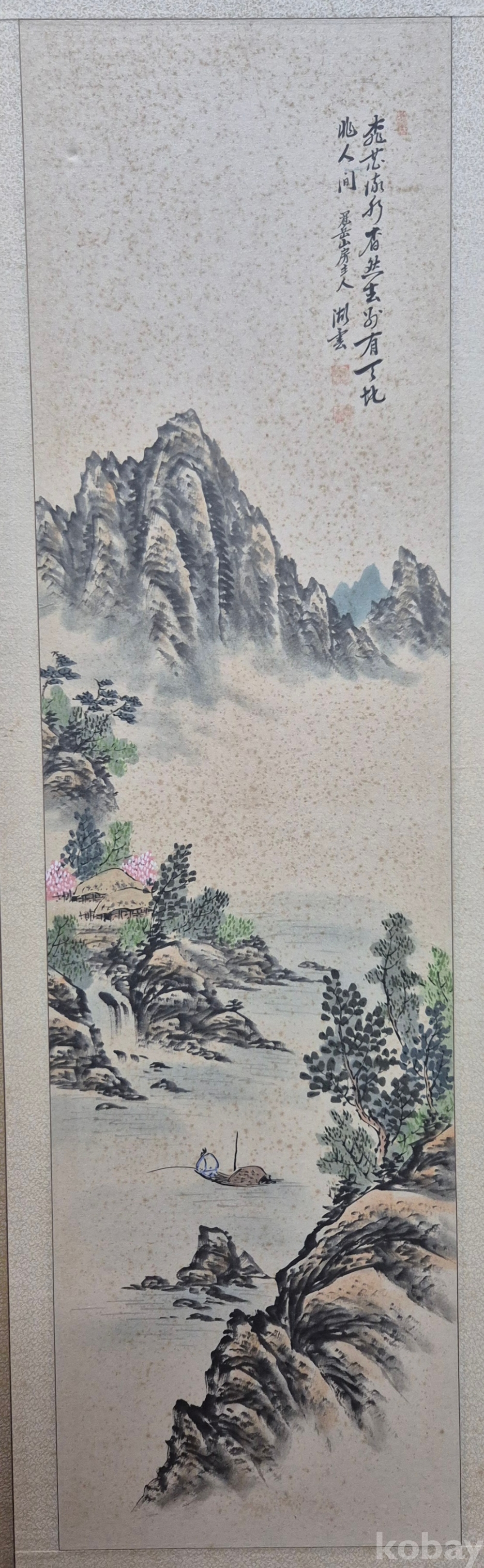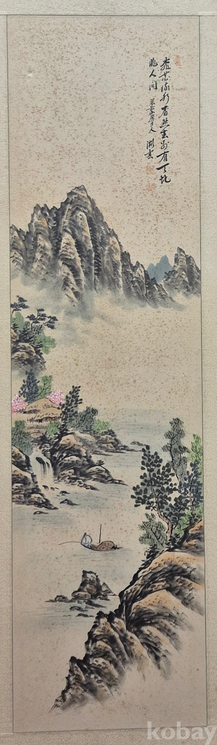 작품성 좋은 시원스럽게 잘 그려진 춘경 산수화'이오니 작품 이미지상 수결 및 낙관'등 두루 잘