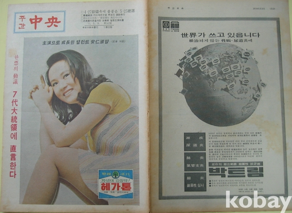 1971년 주간조선 잡지 - 표지모델 영화배우 장미화 -