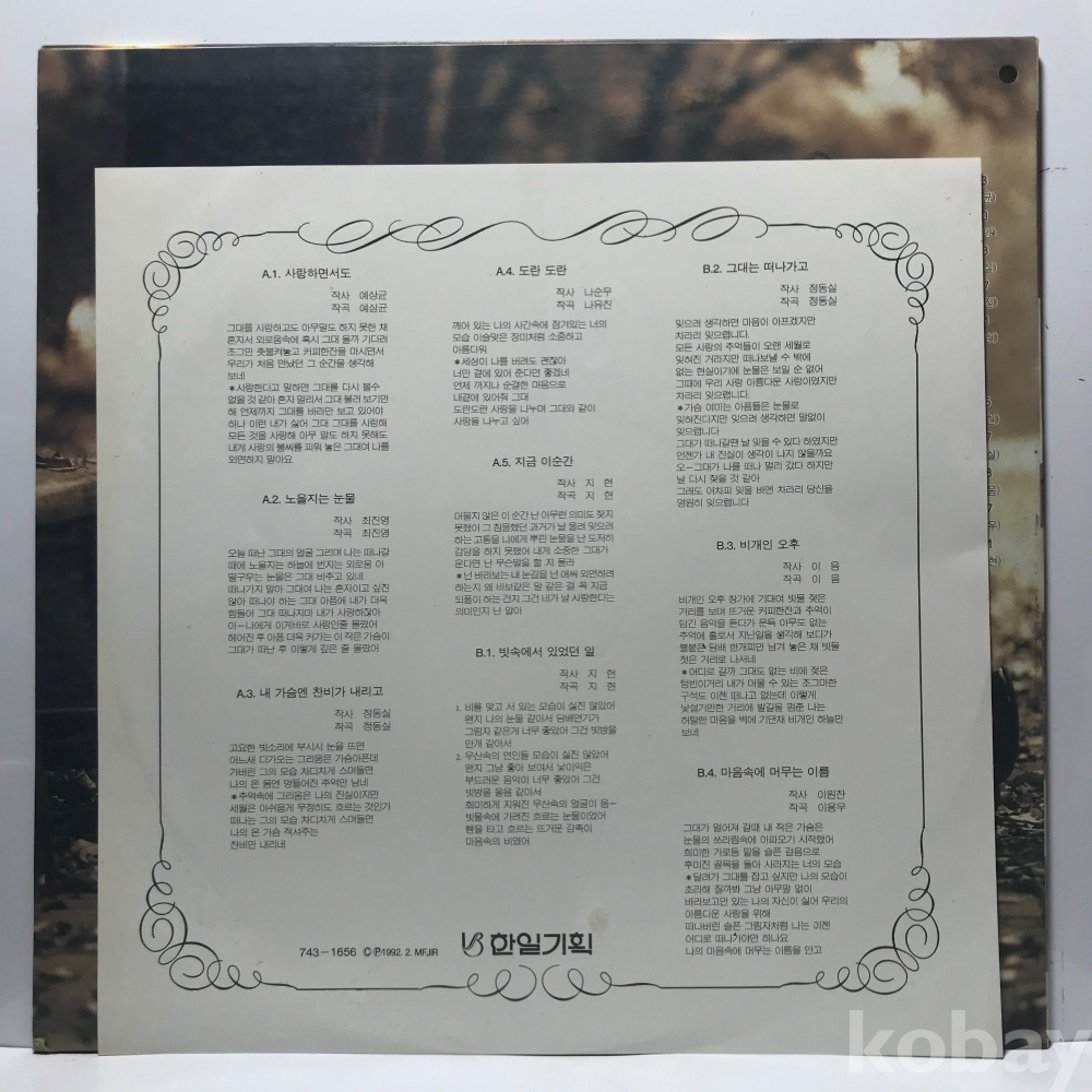 자켓상태 | EX : 약간의 마모, 모서리 찢김 존재 | 음반상태 | NM : 개봉했으나 미사용급, 스크래치 없음 | 발매정보 | 알수없음 | 가사지여부 | 무 |