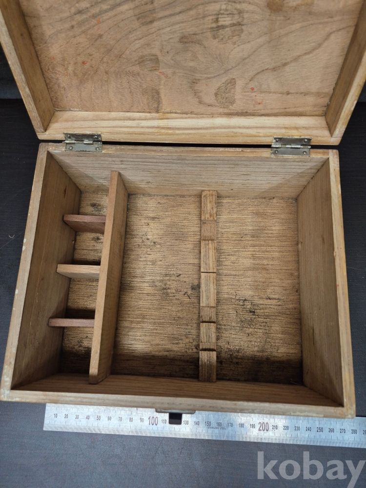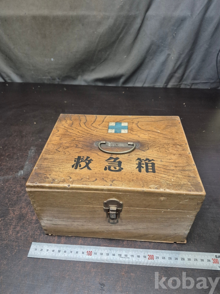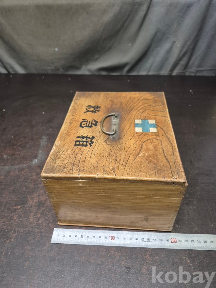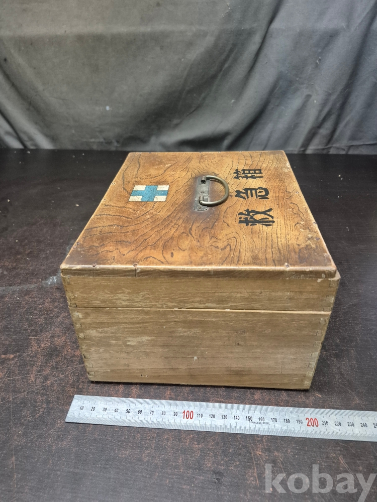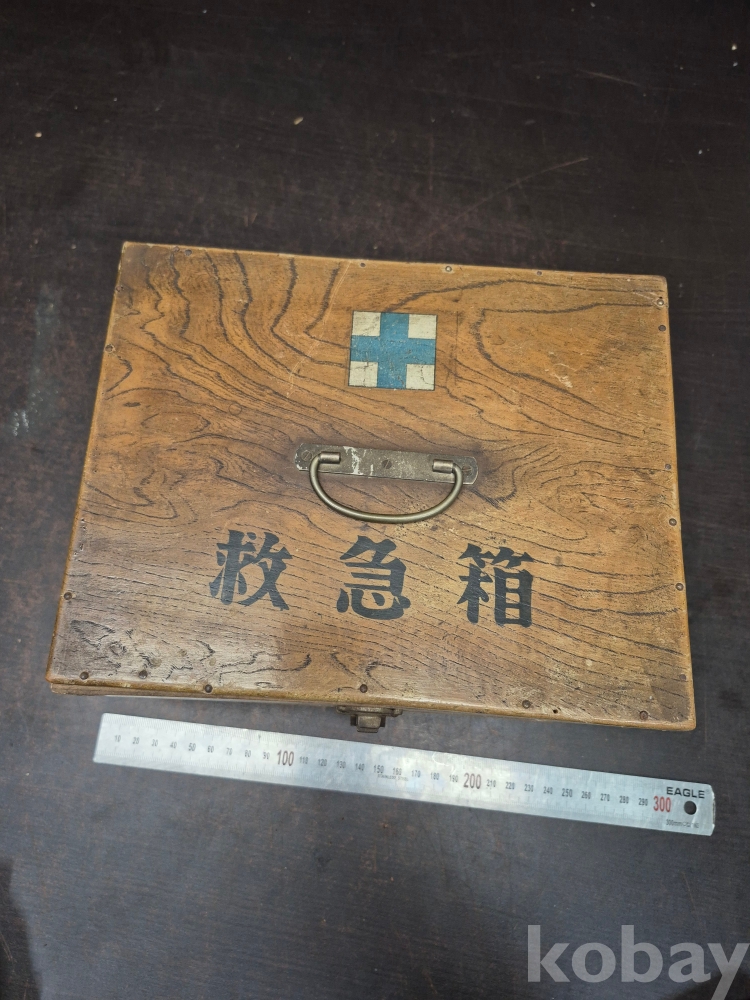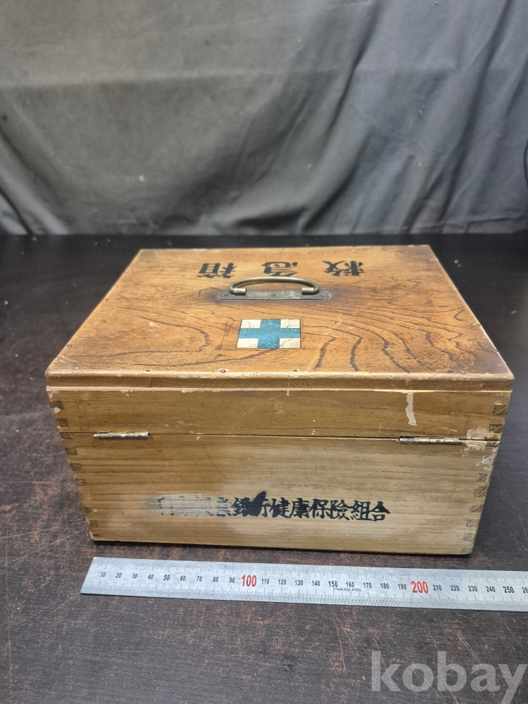 1950년대 원목으로 만들어진 구급함 사괴물림으로 만들어져 있으며 못으로도 제작되어 있어요 24*19*13